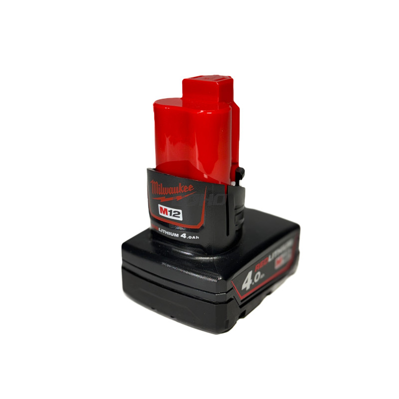 Milwaukee M12 B4 – galingas 12 V akumuliatorius su 4 Ah talpa, skirtas ilgesniam darbui be prastovų ir efektyviam energijos tiekimui profesionaliems įrankiams.