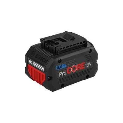 Bosch ProCORE 18 V (8,0 Ah) yra ypač didelės talpos akumuliatorius, skirtas intensyviems profesionaliems darbams. Naudojant ProCORE technologiją, jis pasižymi maksimaliu energijos perdavimu, leidžiančiu įrankiams veikti visu pajėgumu, net esant sudėtingiausioms užduotims.