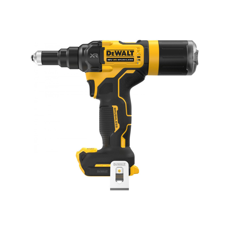 DeWALT DCF403NT 18 V XR bevielis kniediklis tinka 2,4–4,8 mm aliuminio, plieno ir nerūdijančio plieno kniedėms. 10 000 N traukos jėga ir 25 mm eiga leidžia atlikti darbą vienu veiksmu. Lengvai keičiami antgaliai, integruotas LED šviesos diodas ir laikymo vieta pagerina darbo komfortą. Svoris 1,6 kg, ilgis 268 mm – idealus automobilių remontui, metalui ar statyboms.