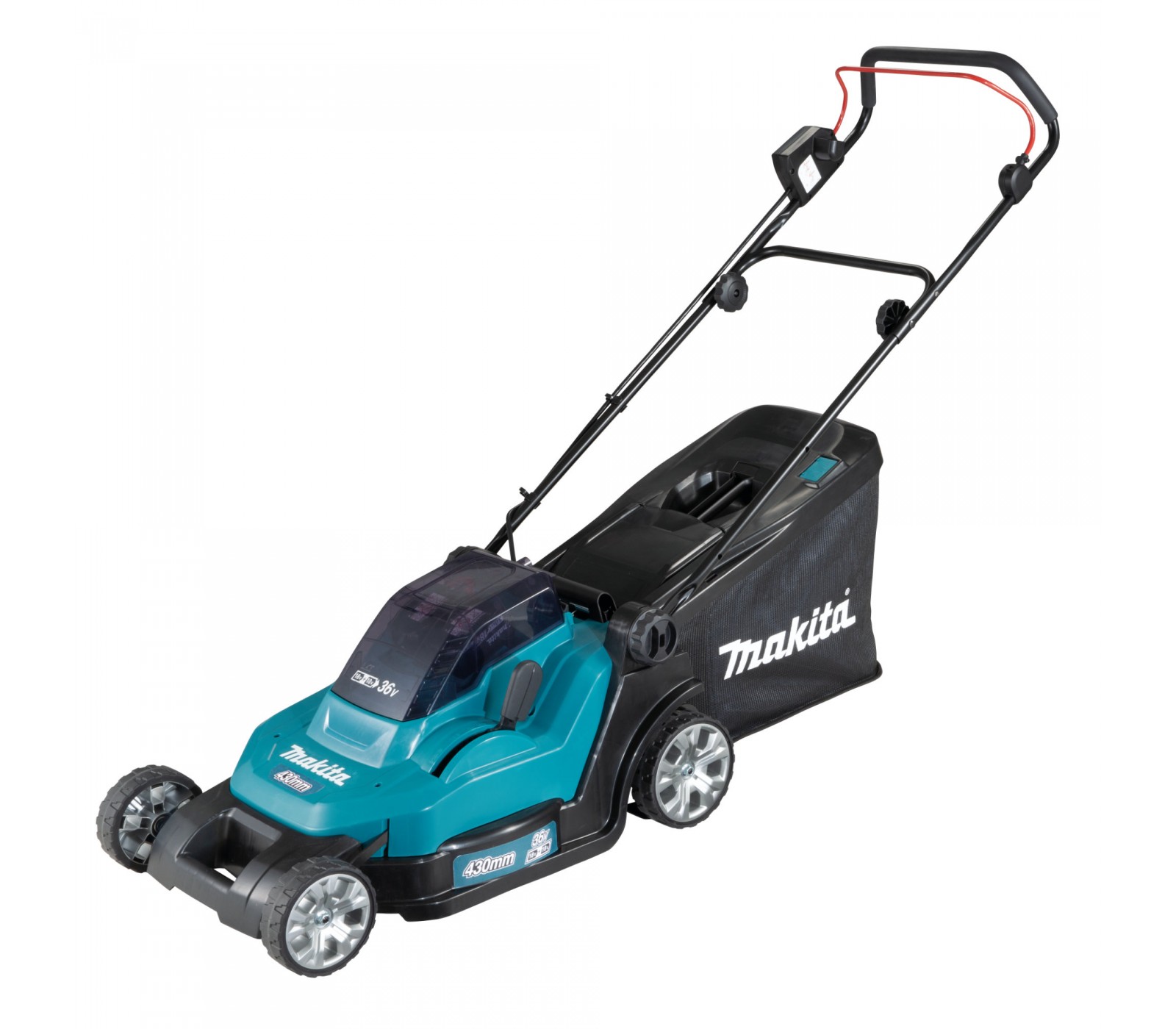 Makita DLM432Z – 36 V (2 x 18 V) akumuliatorinė vejapjovė su 43 cm pjovimo pločiu, 50 l surinkimo dėže.