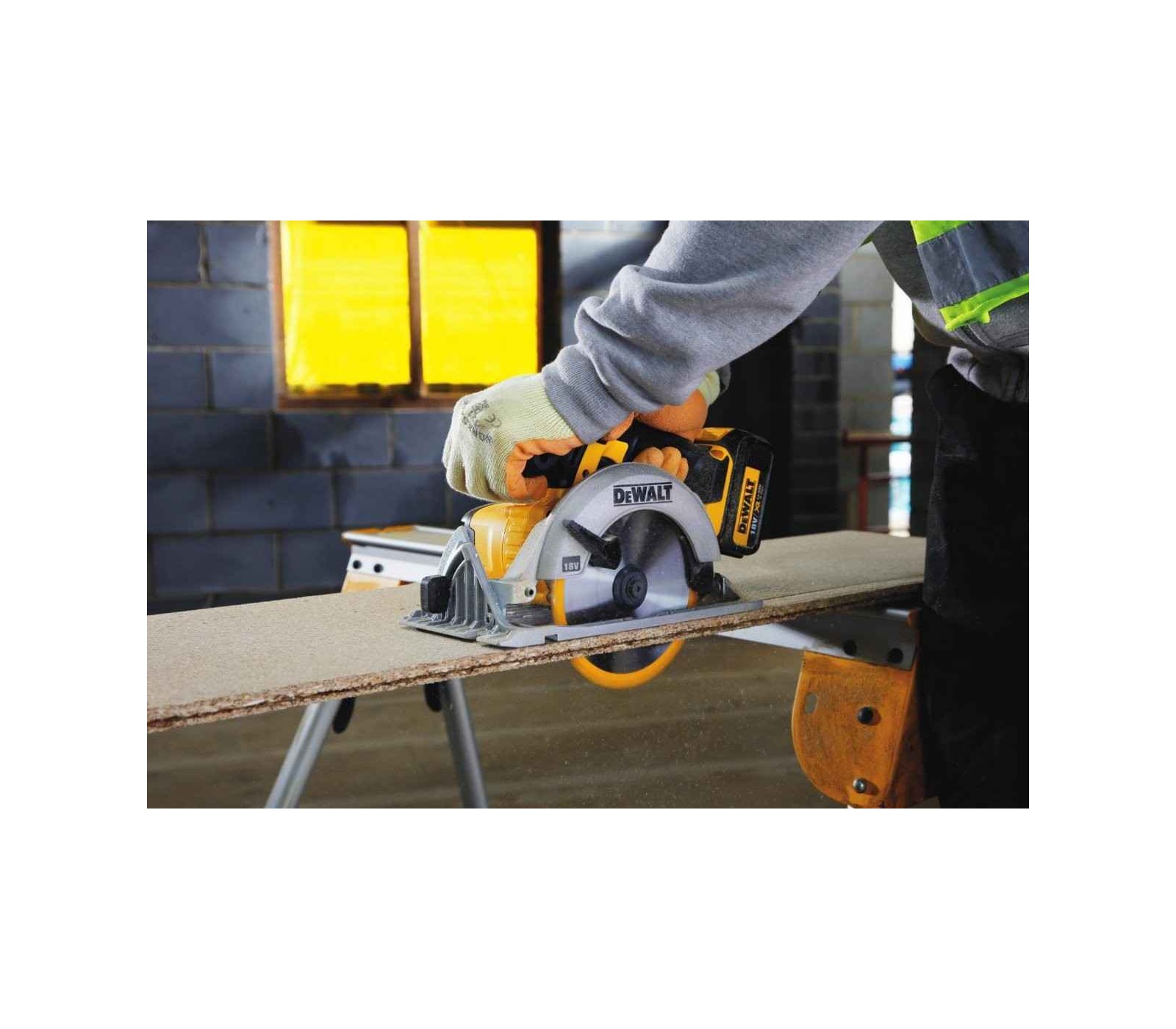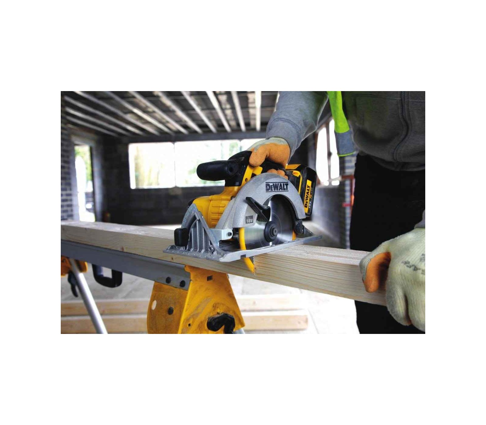 Dewalt akumuliatorinis diskinis pjūklas DCS391N su 18V galia ir 165 mm disku užtikrina greitą ir tikslų pjovimą.