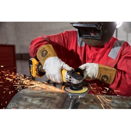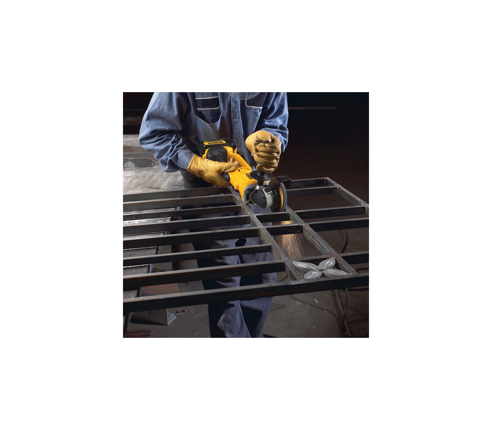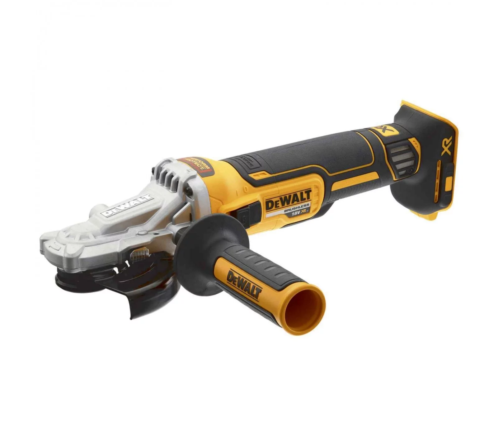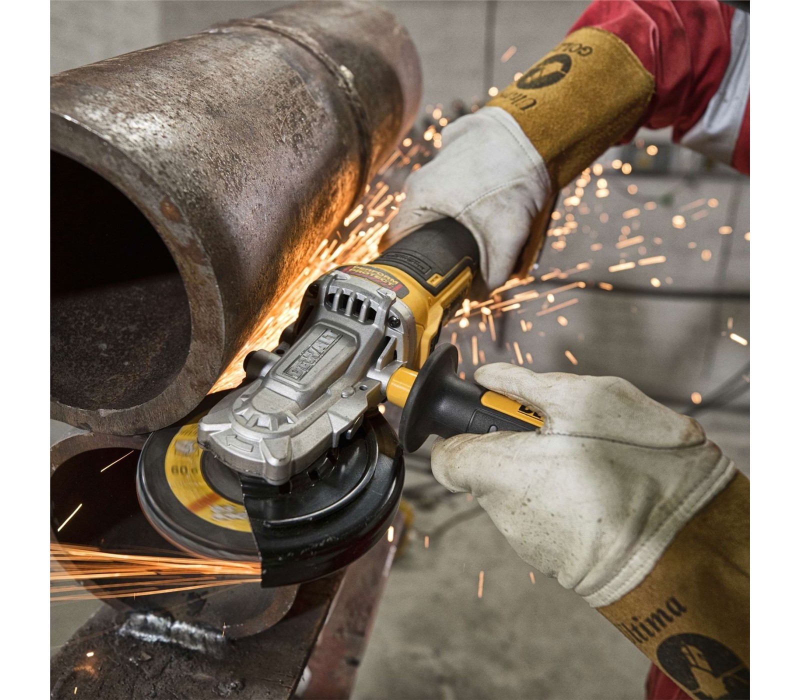 DeWALT DCG460N 54V XR FLEXVOLT 230 mm kampinis šlifuoklis suteikia didelę galią ir patikimumą net sunkiausiems darbams – nuo plieninių vamzdžių iki betono pjovimo. Elektroninis stabdis greitai sustabdo diską, o sankaba mažina atatranką. Belaidis valdymas leidžia prijungti dulkių siurblį. Guminė rankena ir dviejų padėčių rankenėlė užtikrina patogų bei saugų darbą.