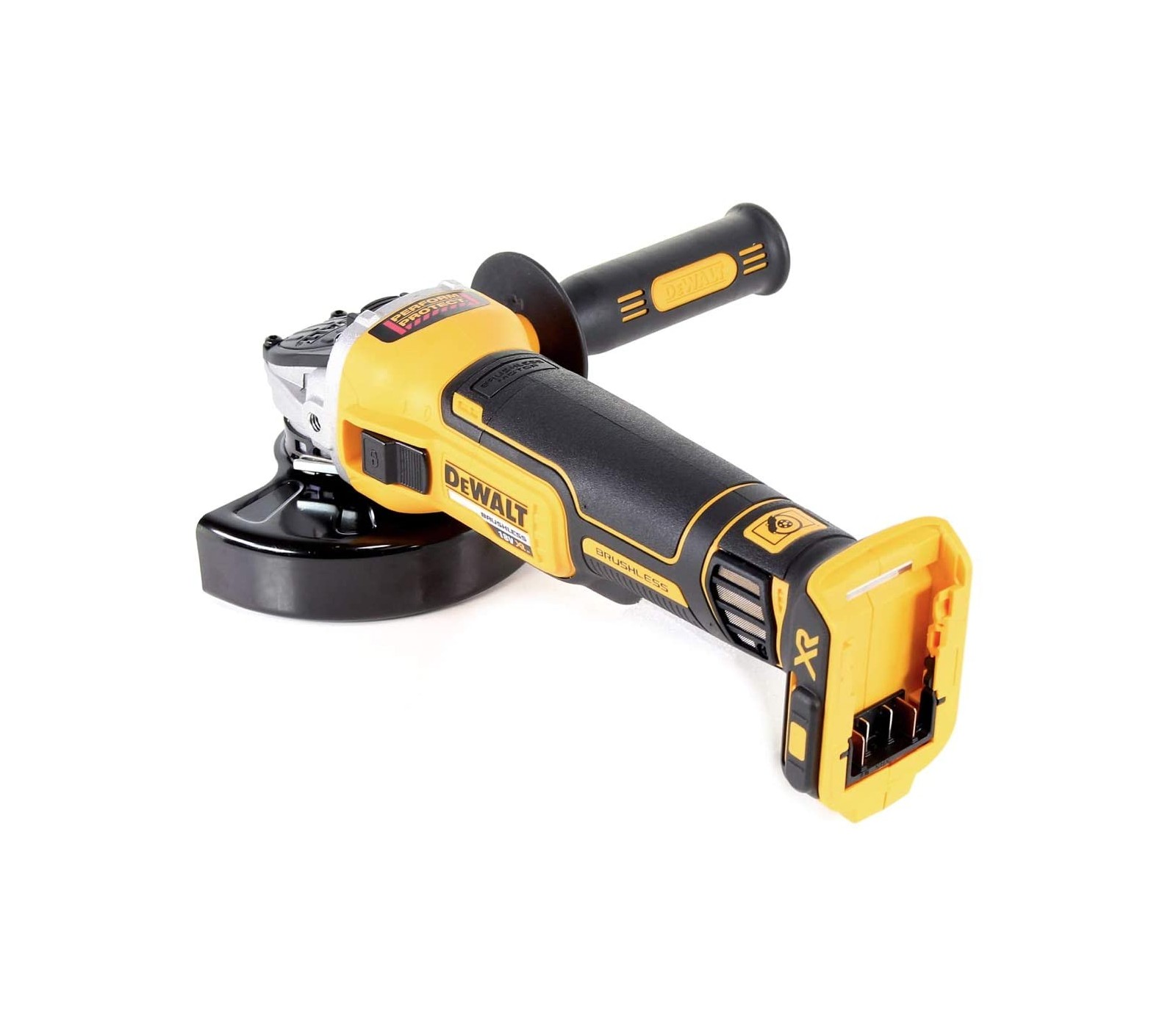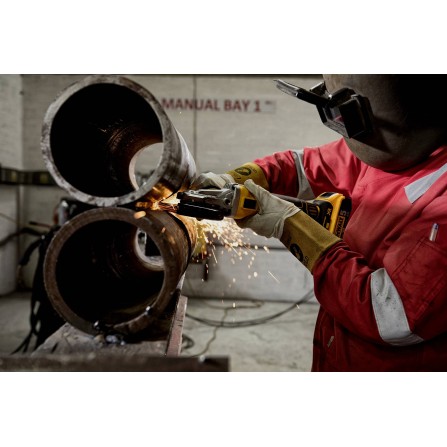 DeWALT DCG460N 54V XR FLEXVOLT 230 mm kampinis šlifuoklis suteikia didelę galią ir patikimumą net sunkiausiems darbams – nuo plieninių vamzdžių iki betono pjovimo. Elektroninis stabdis greitai sustabdo diską, o sankaba mažina atatranką. Belaidis valdymas leidžia prijungti dulkių siurblį. Guminė rankena ir dviejų padėčių rankenėlė užtikrina patogų bei saugų darbą.