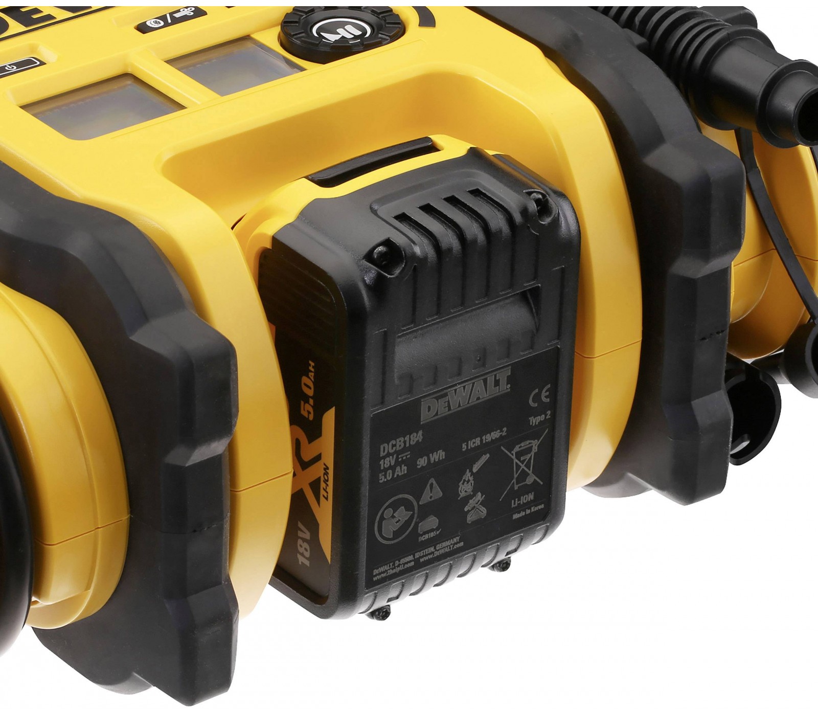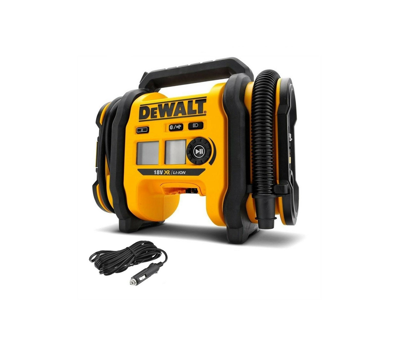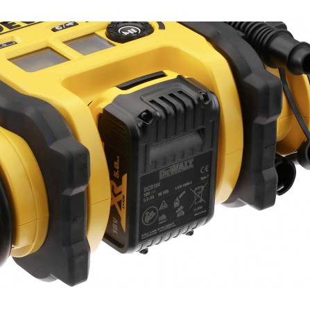 Dewalt DCC018N-XJ akumuliatorinis oro kompresorius pasižymi aukšta galia kompaktiškame ir lengvame korpuse. Jis turi aukšto slėgio išėjimą iki 11 bar (160 PSI), puikiai tinka padangų pripūtimui, įskaitant 235/70R17 padangą per 400 sekundžių. Kompresorius turi greito išleidimo funkciją ir gali būti maitinamas iš trijų skirtingų šaltinių: 18V XR baterijų, 12V akumuliatoriaus arba 230V AC adapterio (parduodamas atskirai). Skaitmeninis manometras užtikrina tikslią slėgio rodmenį, o LED šviesa leidžia naudoti prastomis apšvietimo sąlygomis, užtikrinant tikslumą ir patogumą. Komplekte yra aukšto slėgio adapteris, Presta dviračio adapteris ir kamuoliuko adata.