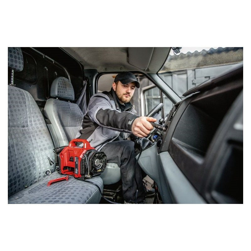 Milwaukee M18 BI-0 akumuliatorinis oro kompresorius yra kompaktiškas ir lengvas – puikiai tinka automobilių, lengvųjų sunkvežimių ir mažesnių įrenginių padangoms pripūsti. Didžiausias slėgis – 10,3 baro, o automatinis išsijungimas užtikrina tikslų pripūtimą.