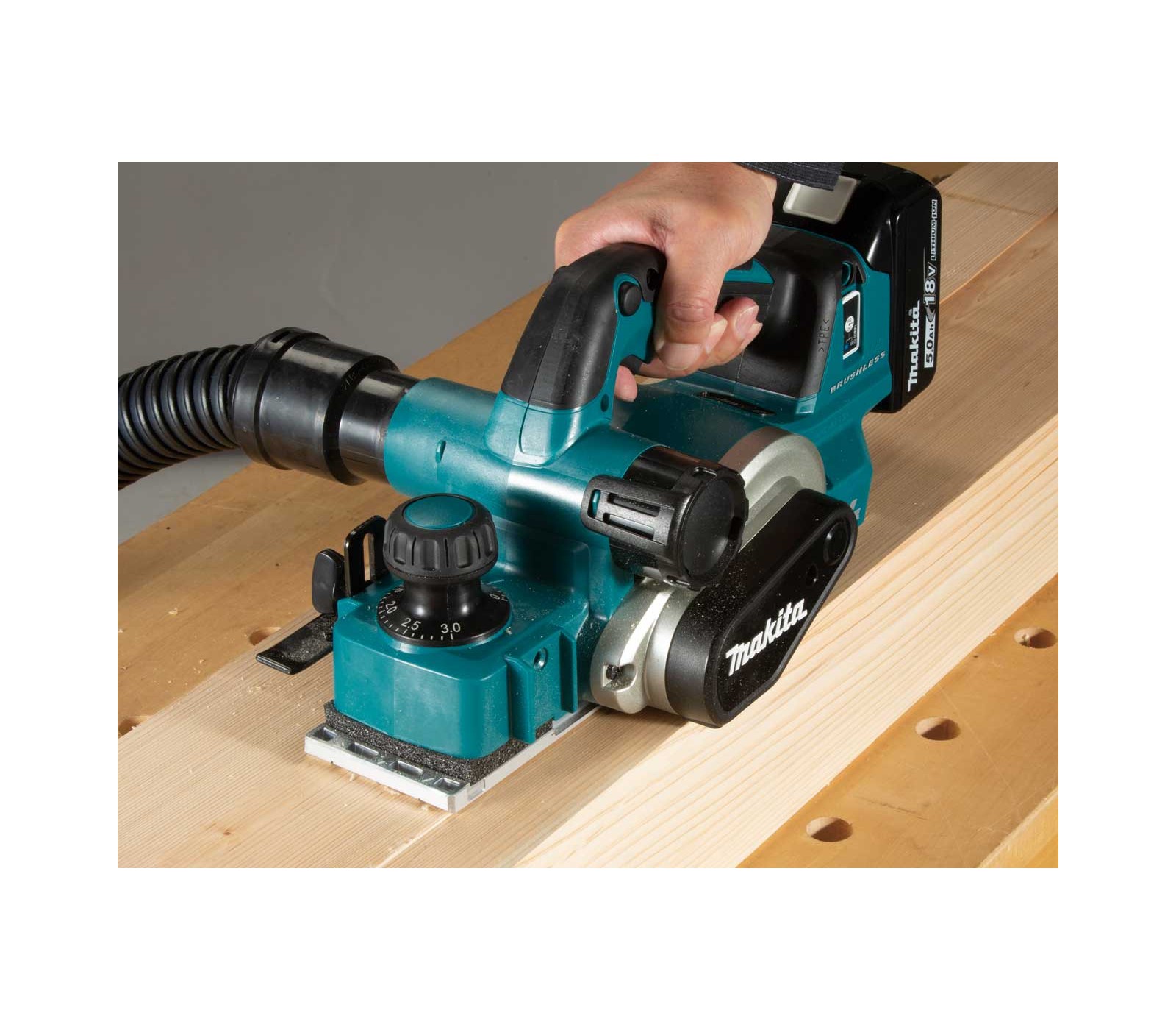 Makita DKP181Z 18 V akumuliatorinis oblius su bešepečio variklio technologija yra galingas, tikslus ir patikimas įrankis medienos apdirbimui.