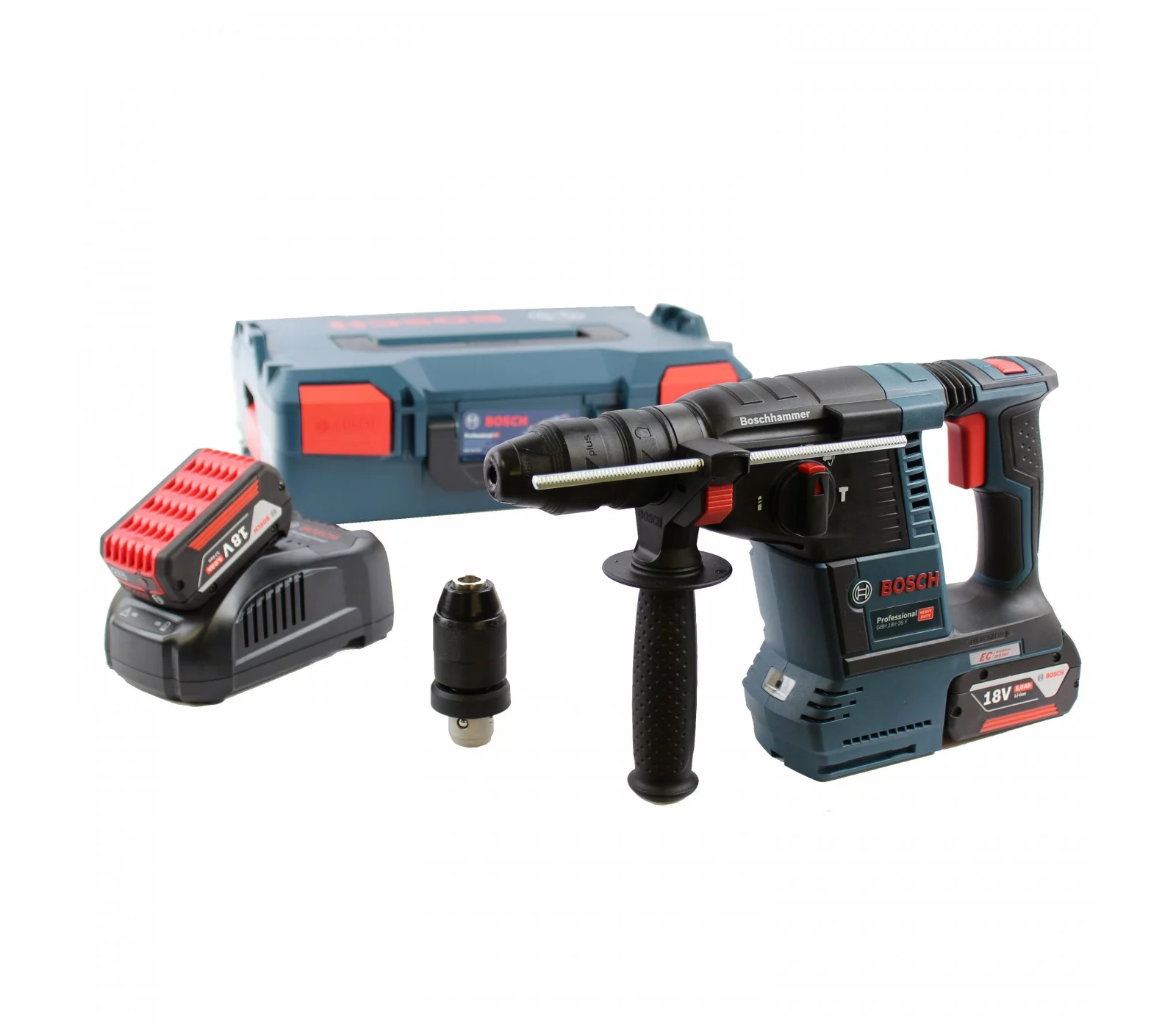 Įrankis turi keičiamos griebtuvų sistemos funkciją, leidžiančią naudoti SDS-Plus laikiklį arba standartinį griebtuvą. Komplekte esančios 2 x 5 Ah baterijos suteikia ilgą veikimo laiką, o greitas įkroviklis minimalizuoja prastovas.