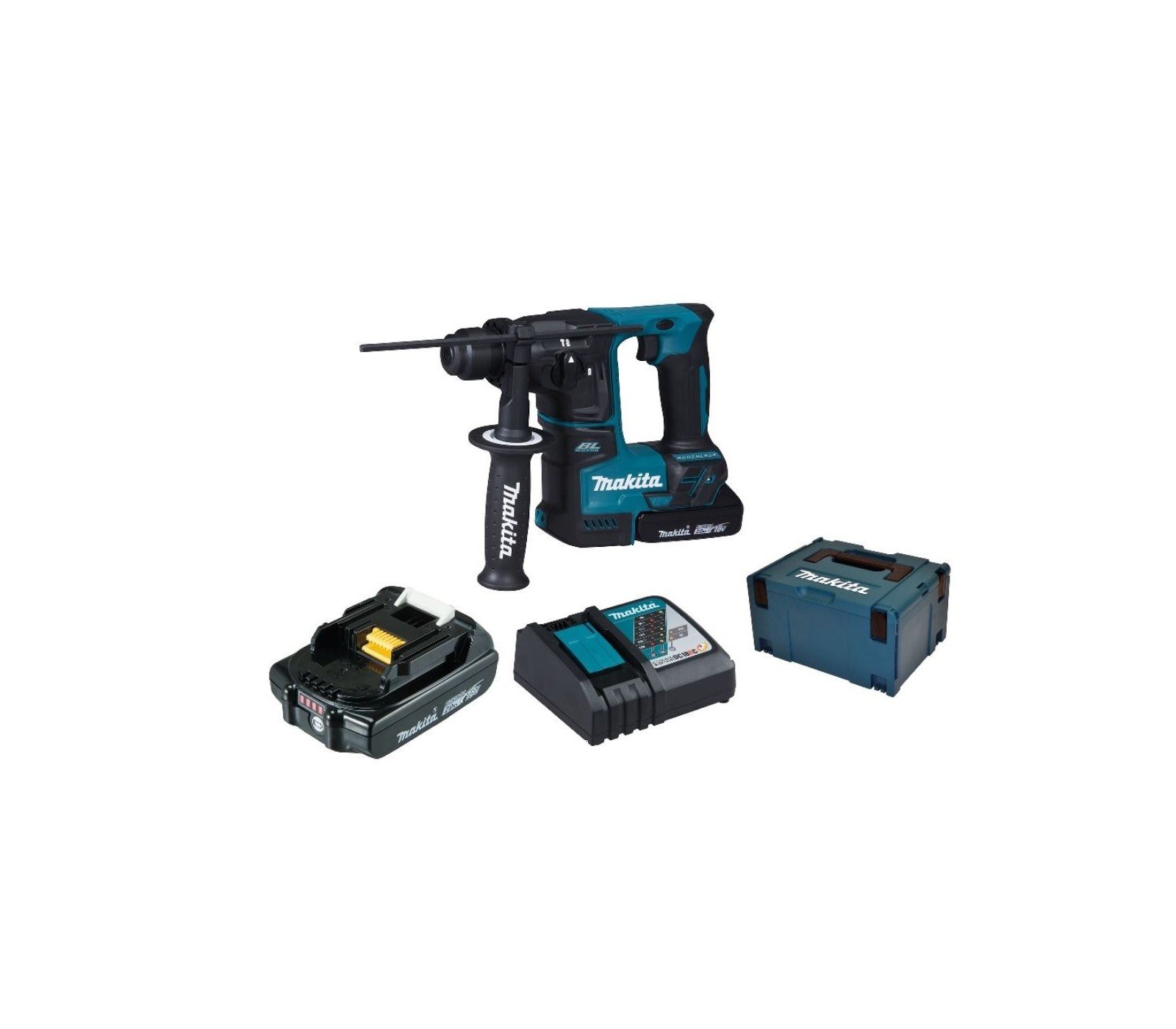 Makita DHR171RAJ 18 V akumuliatorinio perforatoriaus rinkinys su 2 x 2 Ah baterijomis, įkrovikliu ir lagaminu yra galingas, kompaktiškas ir patogus įrankis gręžimui ir kalimui.