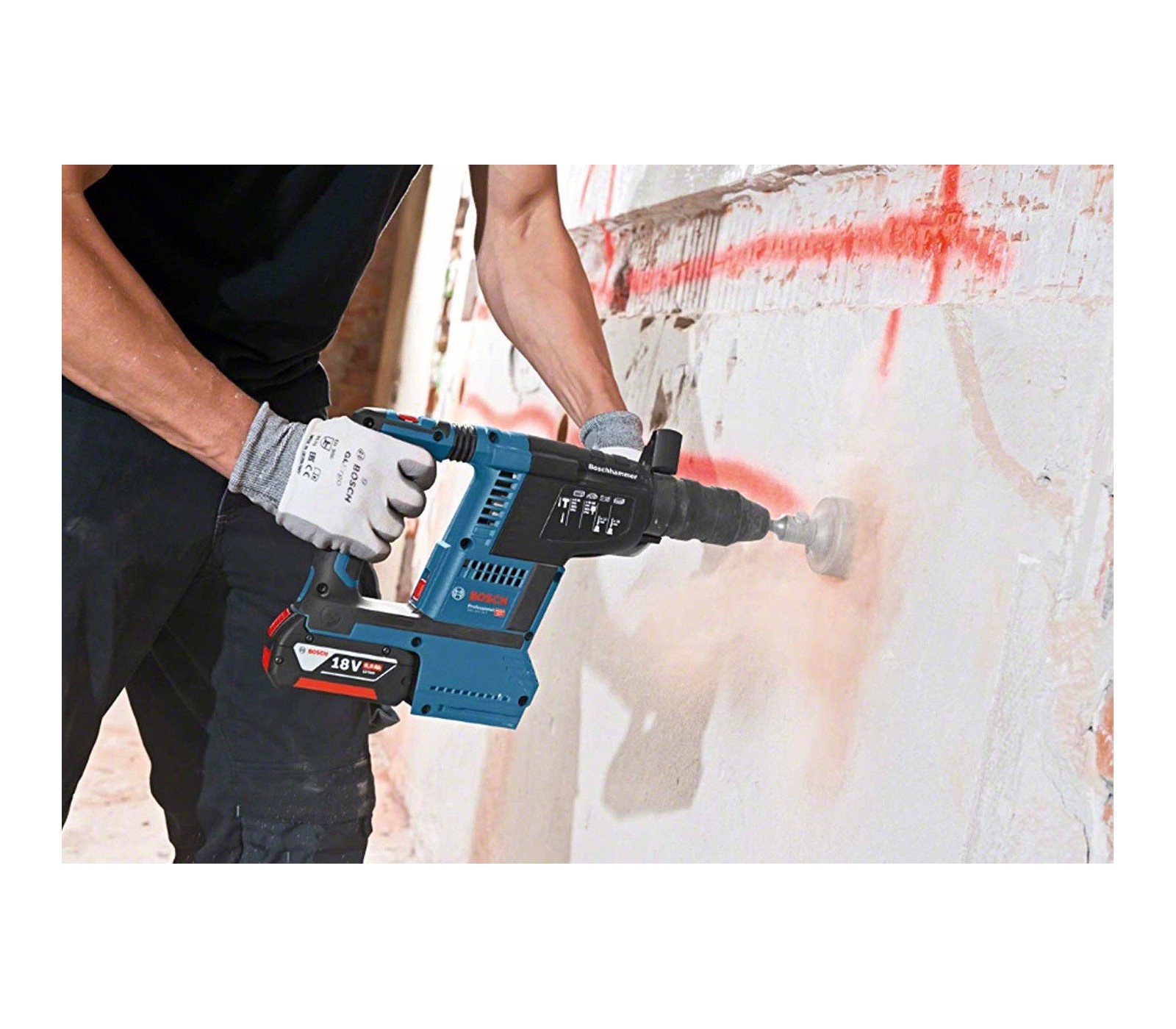 Komplekte esantis lagaminas palengvina įrankio transportavimą ir saugojimą, o SDS-Plus sistema užtikrina greitą grąžtų keitimą. Parduodamas be akumuliatoriaus ir įkroviklio, todėl puikiai tinka turintiems Bosch 18V serijos baterijas.