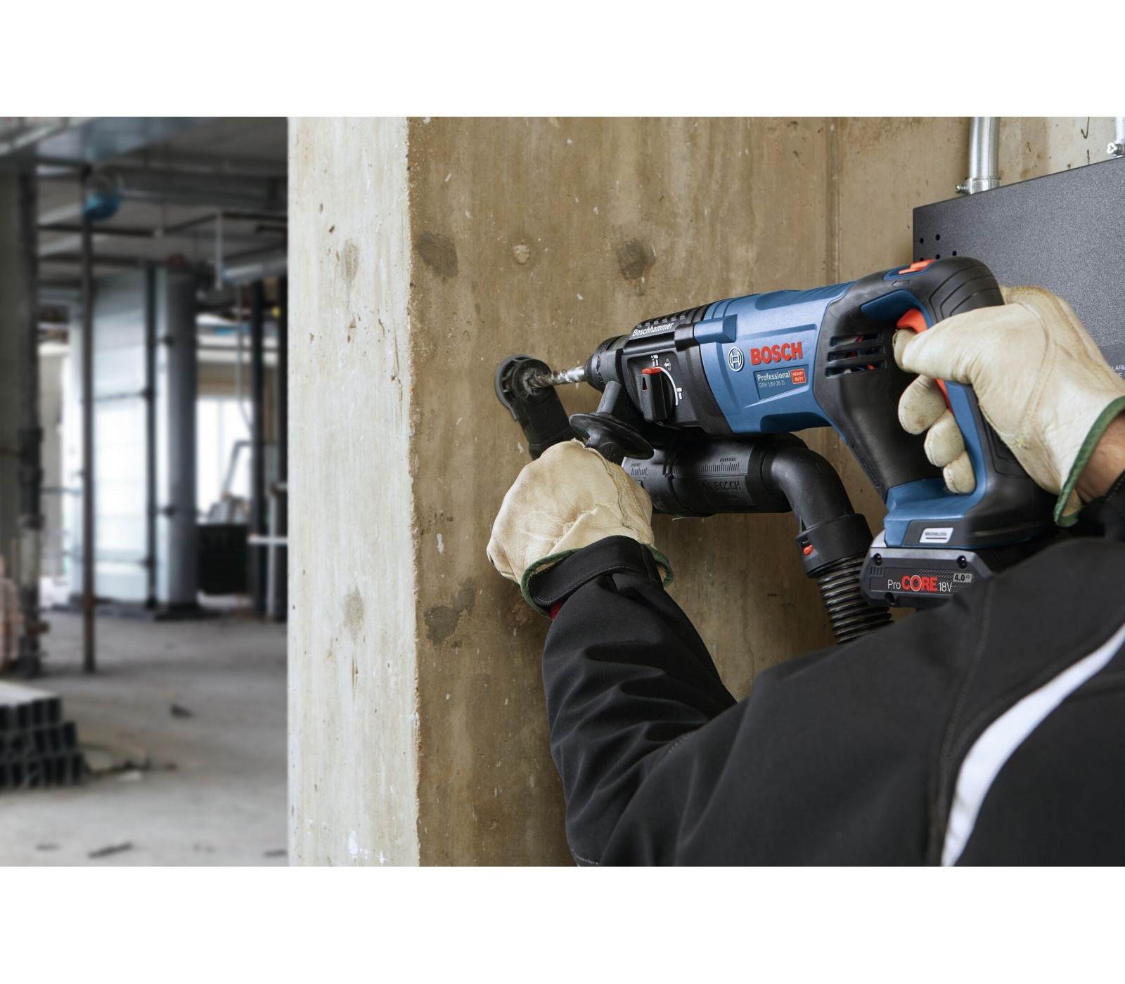 Galingas 2,3 J smūgio stiprumas kompaktiškame bešepetėliniame perforatoriuje su 4 režimais: perforavimas, tik kalimas, tik gręžimas ir Variolock. Žemos vibracijos (8,9 m/s²), metalinė pavarų dėžė, antivibracinė rankena. Suderinamas su M18 CDEX dulkių siurbliu. Komplekte 2x 5.0 Ah akumuliatoriai, greitas įkroviklis ir priedai. Visiškai suderinamas su M18™ sistema.
