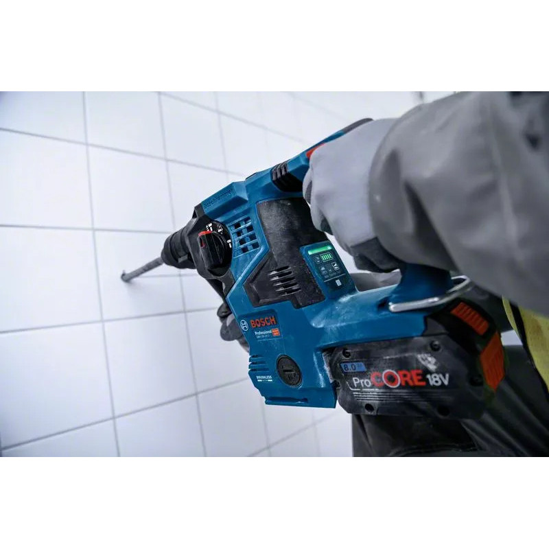 „Bosch akumuliatorinis perforatorius GBH 18V-28 C“ yra galingas ir kompaktiškas įrankis, tinkantis tiek profesionaliems, tiek mėgėjams, kurie ieško efektyvios priemonės darbui su betonu, plytomis ir metalais. Jis siūlo puikią energijos efektyvumo ir svorio pusiausvyrą, leidžiančią atlikti darbus lengvai ir komfortiškai.