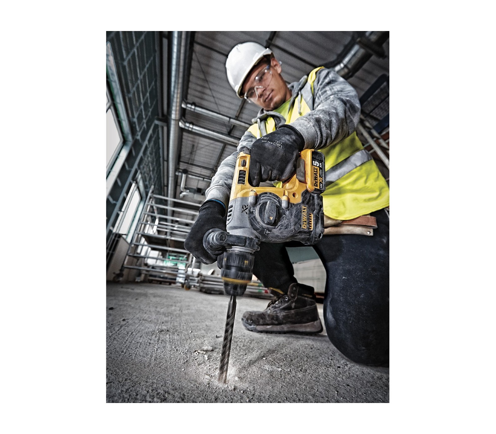 Dewalt akumuliatorinis perforatorius DCH273NT-XJ su 18V XR bešepečio variklio technologija ir 2,1 J smūgio galia užtikrina našumą dirbant su betonu, plytomis ir kitomis medžiagomis.