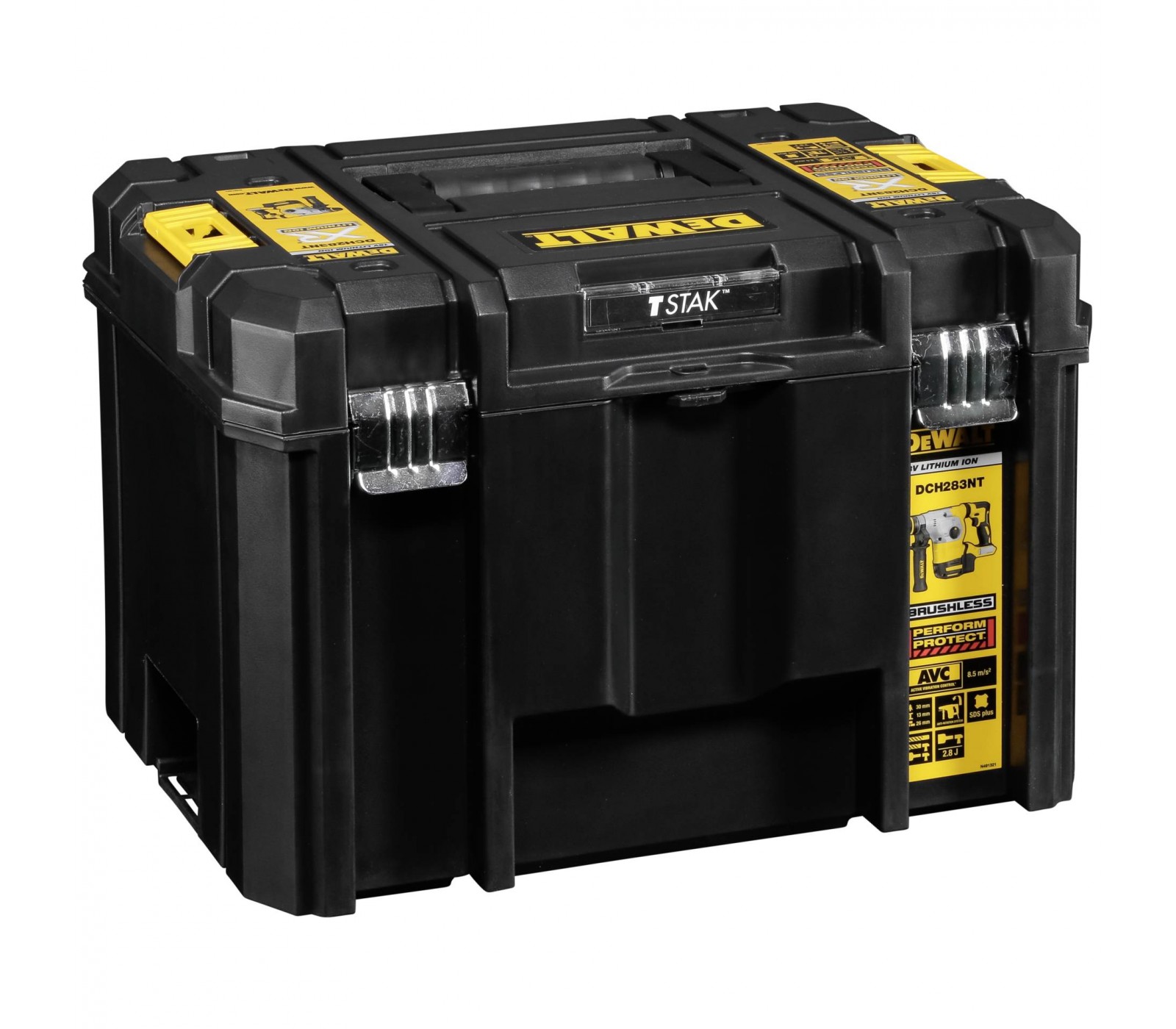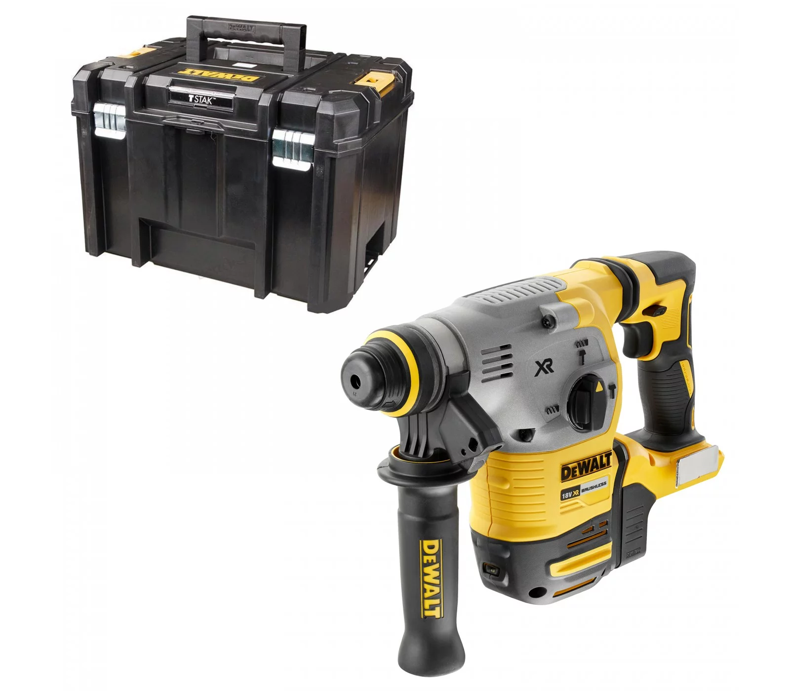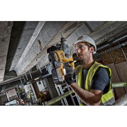 Dewalt DCH283NT-XJ užtikrina 2,8 J smūgio energiją ir gręžia iki 26 mm betone. Su bešepetėliu varikliu, vienu įkrovimu (5Ah) išgręžia virš 74 skylių (10 mm x 80 mm). Turi sukimosi stabdymo režimą kalimui ir smūgio stabdymo režimą gręžimui medyje ir metale. Mažas vibracijos lygis: 8,5 m/s². Kompaktiškas, patogus įrankis betonui, plytoms ir mūrui. Parduodamas be akumuliatoriaus, su lagaminu.