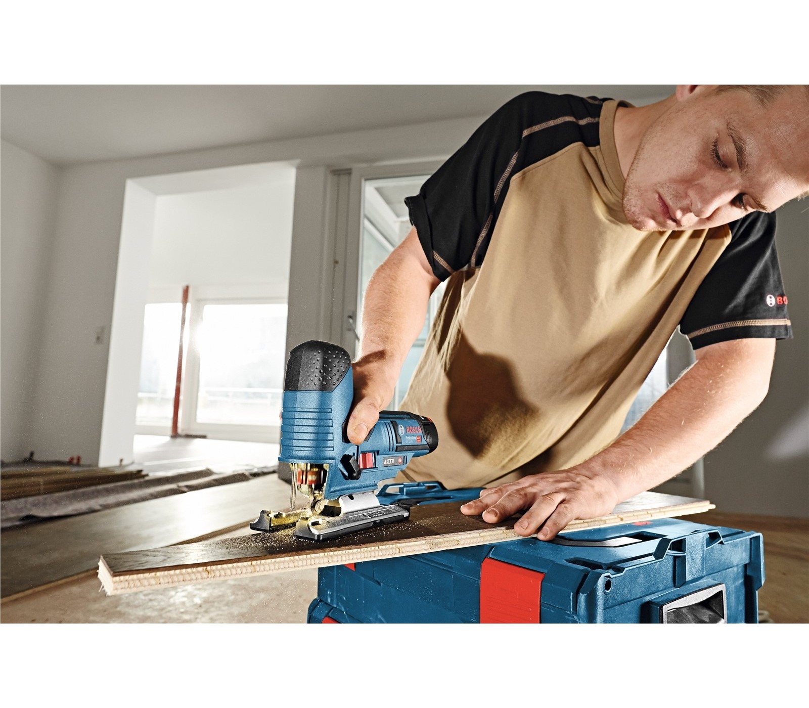 Bosch GST 18 V-LI S – profesionalus akumuliatorinis siaurapjūklis, skirtas tiksliems pjūviams medienoje, metale ir plastike.