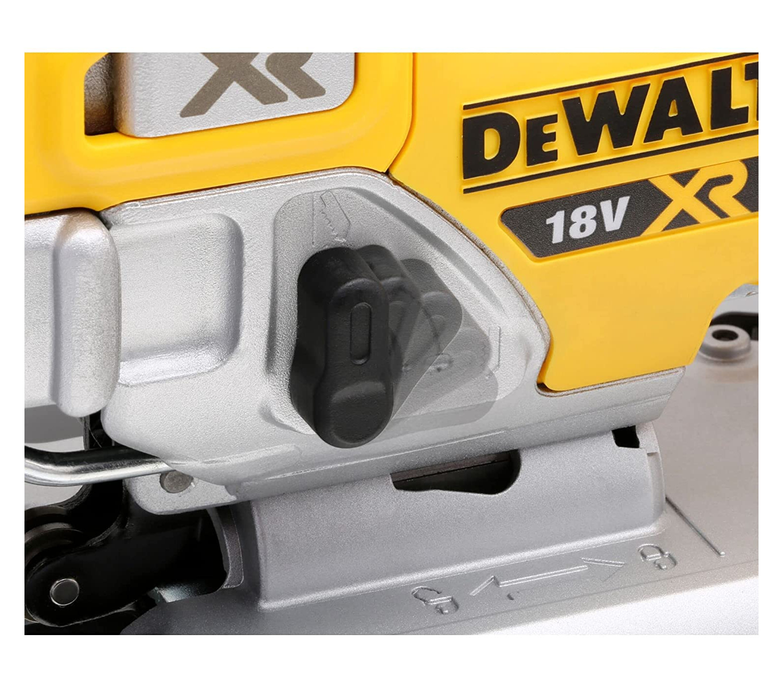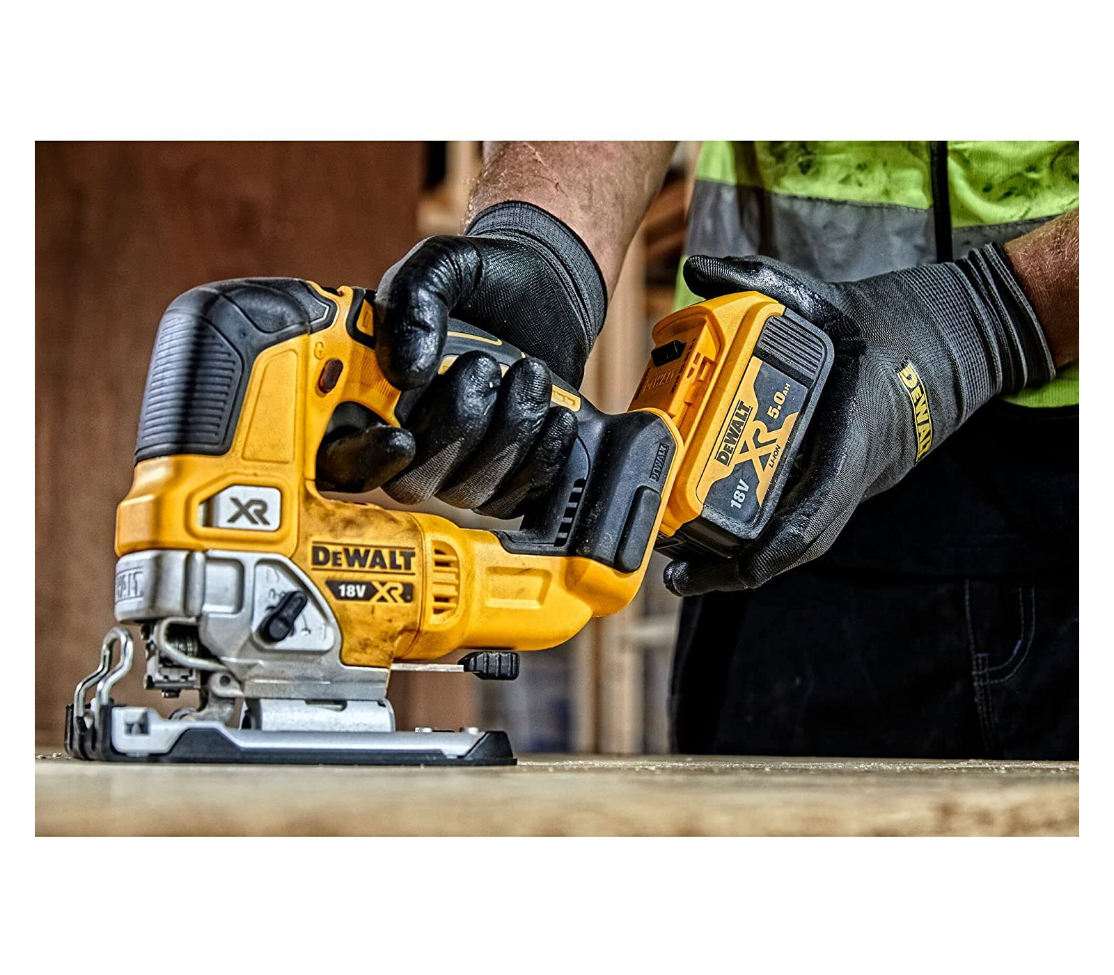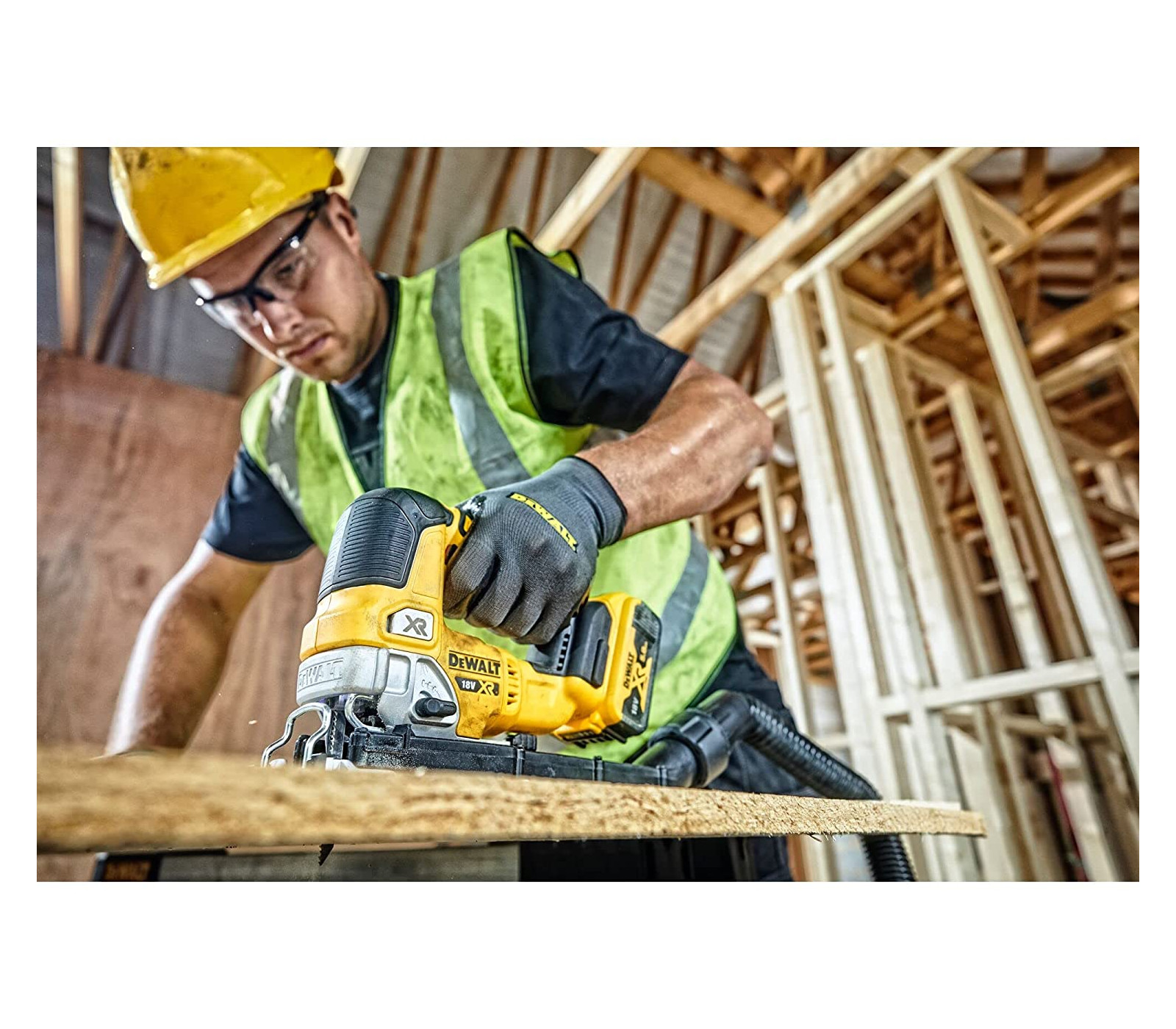 Dewalt akumuliatorinis siaurapjūklis DCS335N su 18V XR bešepečio variklio technologija užtikrina efektyvų ir tikslų pjovimą.