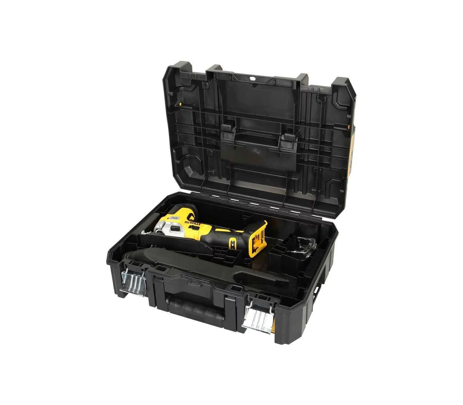 Dewalt DCS335NT siaurapjūklis – tai galingas ir ergonomiškas įrankis, pritaikytas įvairioms medžiagoms, tokioms kaip mediena, metalas ar plastikas. Bešepečio variklio technologija užtikrina ilgaamžiškumą ir efektyvų darbą, o lagaminas palengvina transportavimą ir saugo įrankį.