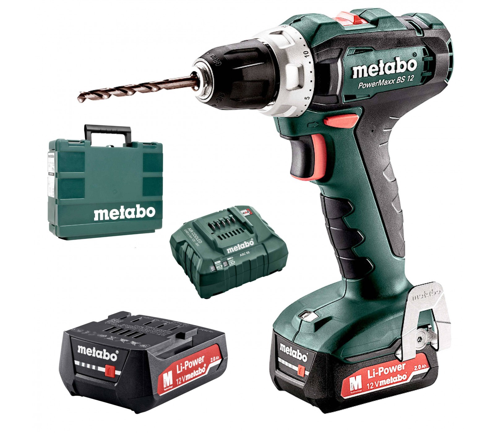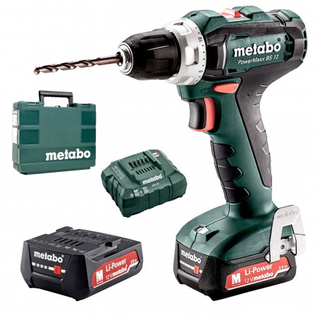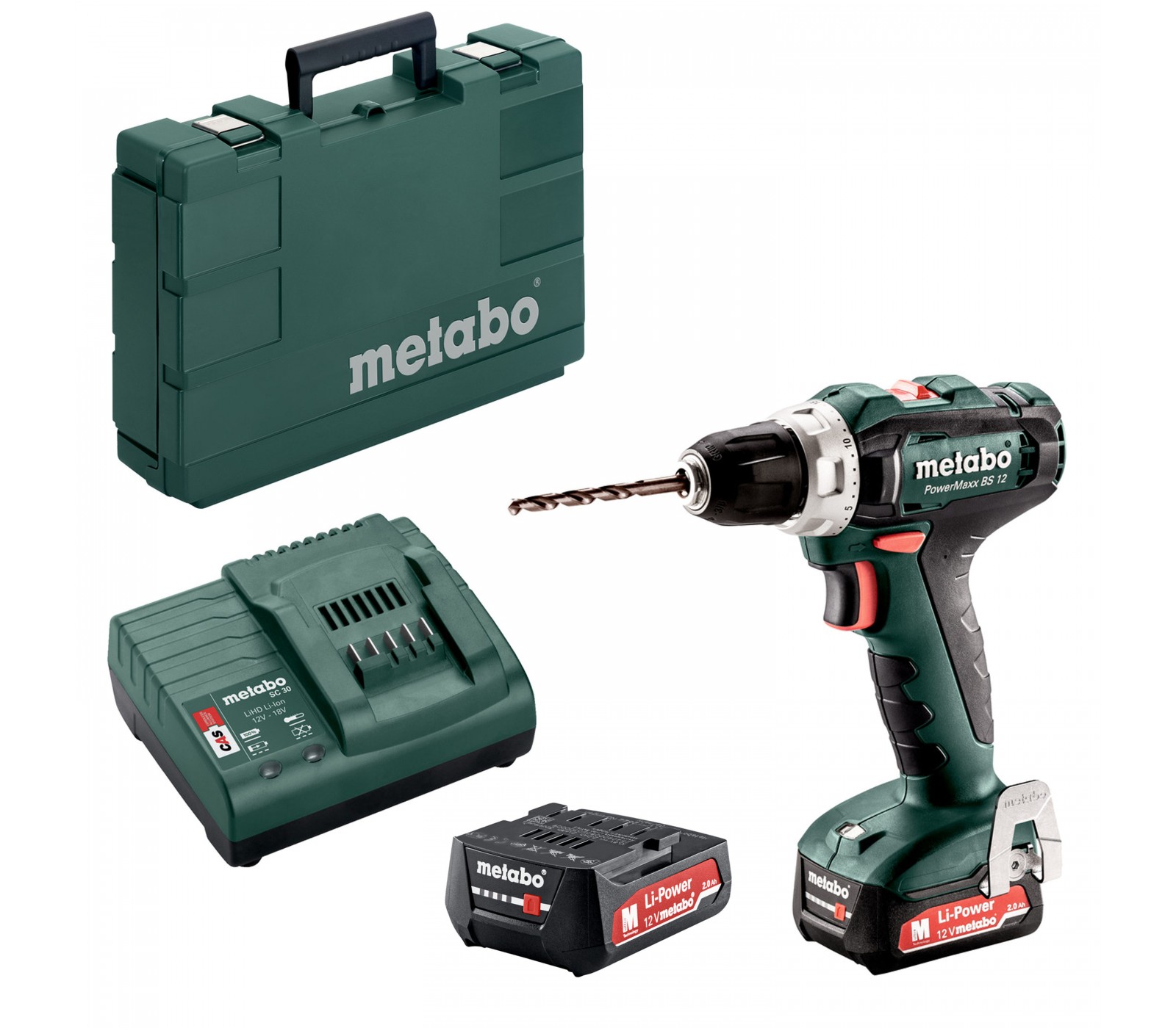 Akumuliatorinio gręžtuvo - suktuvo Metabo PowerMaxx BS 12 (601036500) rinkinys, 12 V, 2 x 2 Ah, įkroviklis + lagaminas