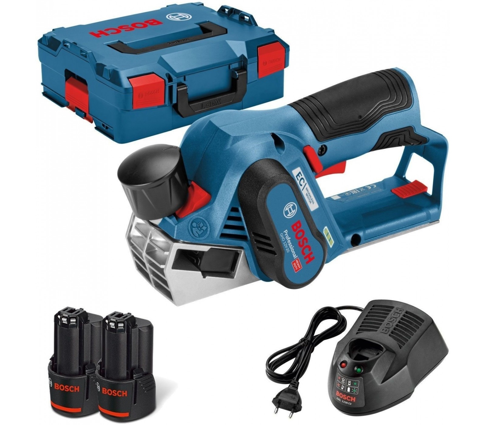 Akumuliatorinio obliaus Bosch GHO 12V-20 rinkinys, 12 V, 2 x 3,0 Ah, įkroviklis + lagaminas