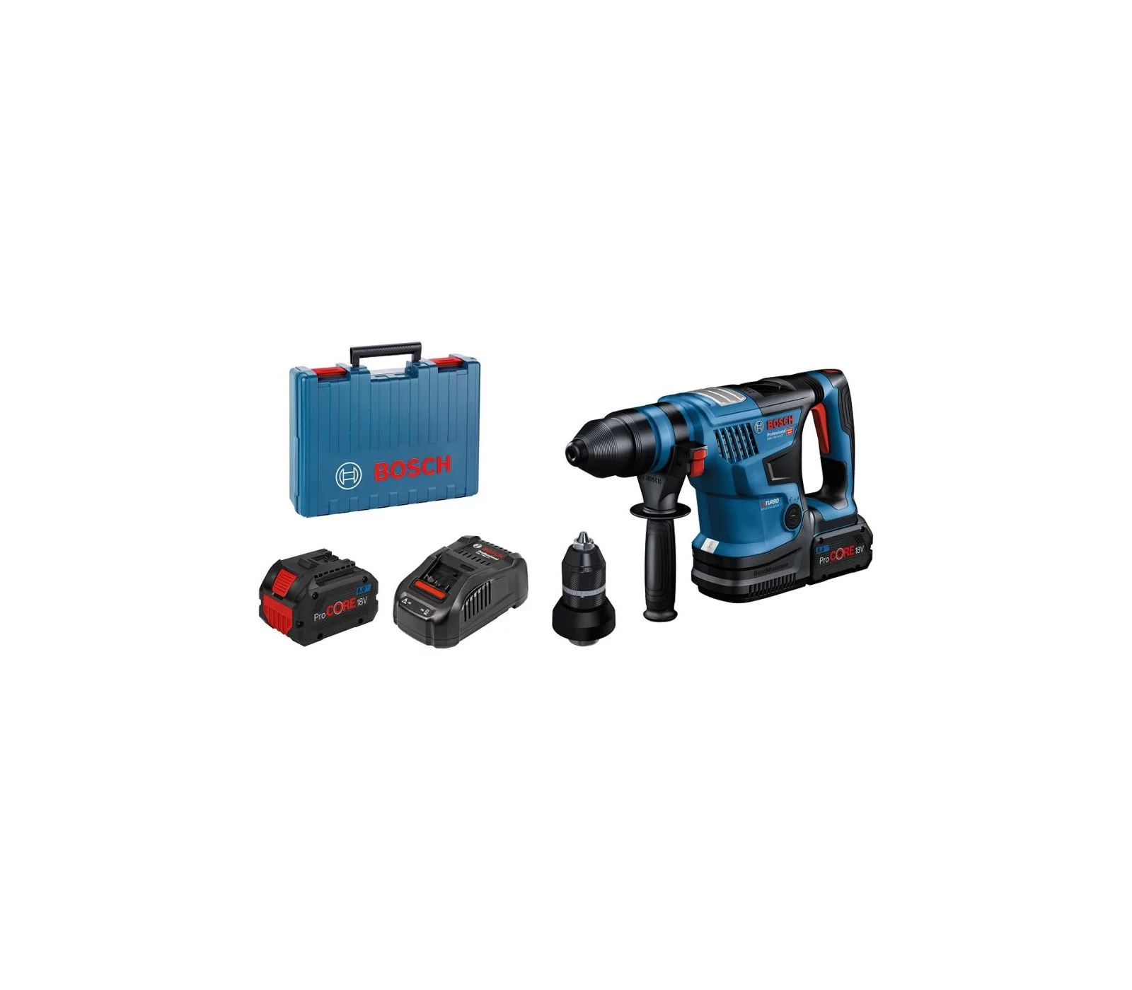 Bosch Akumuliatorinio perforatoriaus Bosch GBH 18V-26 F rinkinys, 18 V, 2 x 5 Ah, įkroviklis + lagaminas 537,98 € su PVM 444,61 € be PVM Bosch GBH 18V-26 F – profesionalus akumuliatorinis perforatorius su 2,6 J smūgio energija ir keičiama griebtuvų sistema. Komplekte – 2 x 5 Ah baterijos, greitas įkroviklis ir lagaminas.