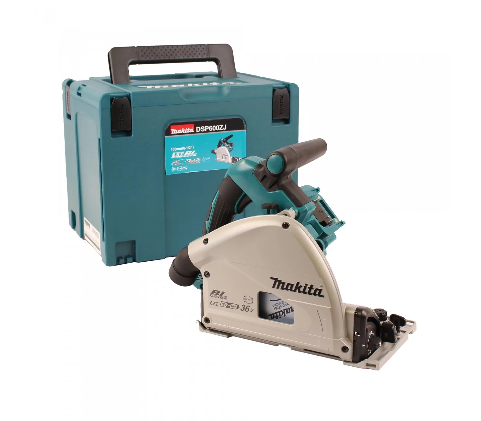 Akumuliatorinis rankinis diskinis pjūklas Makita DSP600ZJ, 2 x 18 V, 165 mm + lagaminas