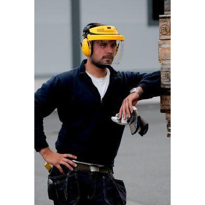 Advantages: - Protective panel with bracket. - Shield holder with adjustment system - for better adjustment. - The visor can be lifted and fixed in the most convenient position. - The visor is made of polycarbonate. - Resistant to medium-sized flying particles. - CE certified. Application: - For protection against liquid splashes, molten metal splashes or hot particles. - The panel can be used up to +120C degrees.