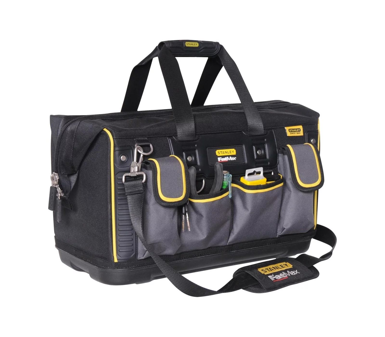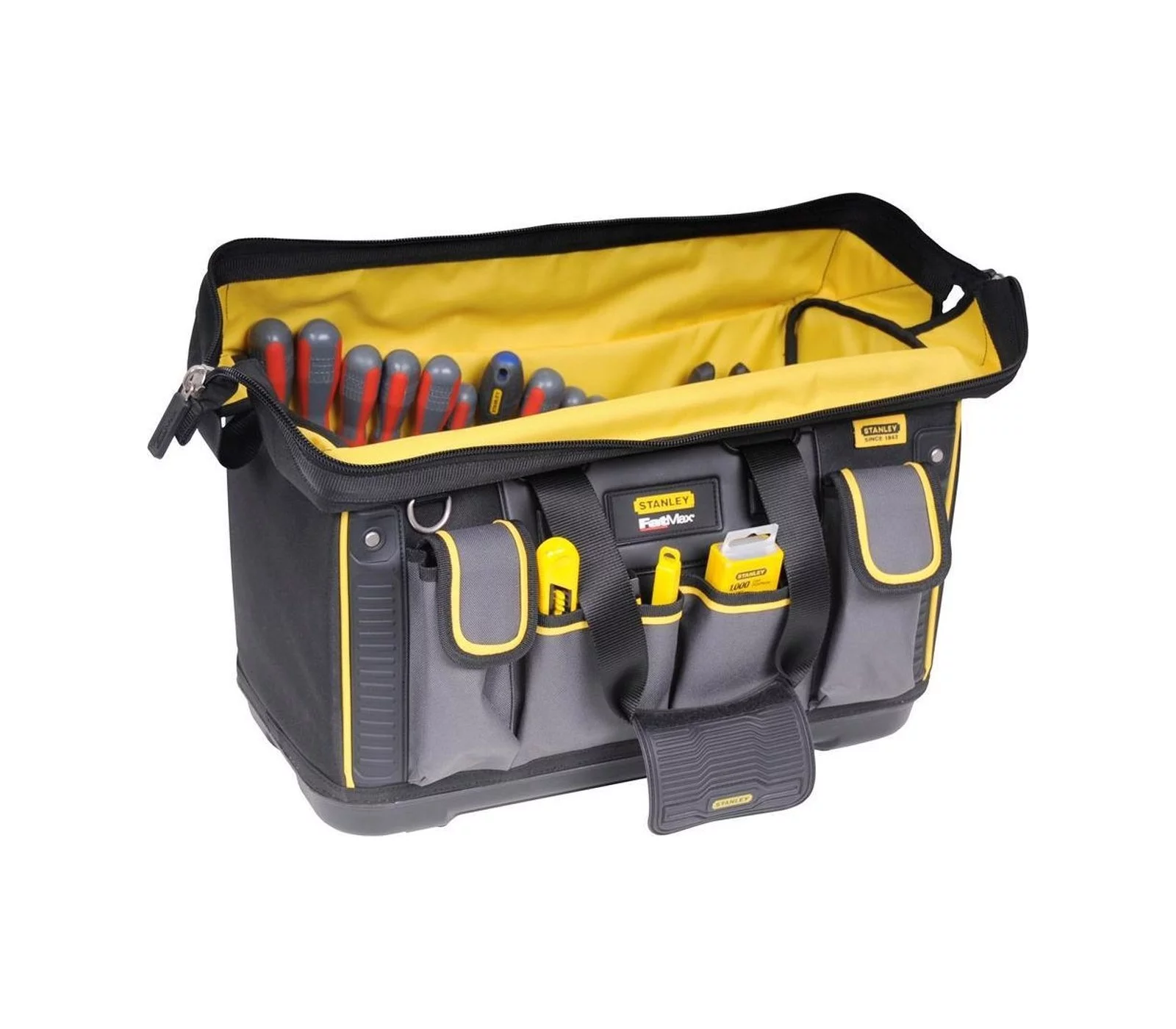 Stanley Fatmax įrankių krepšys (FMST1-71180) yra patogus ir talpus sprendimas, skirtas įvairių įrankių ir priedų laikymui. Naudotojai giria jo kokybę ir tvirtumą, taip pat praktiškas kišenes, kurios leidžia lengvai pasiekti reikiamus daiktus.