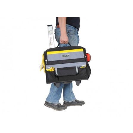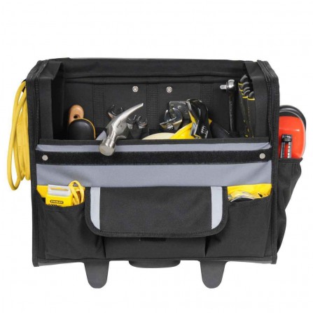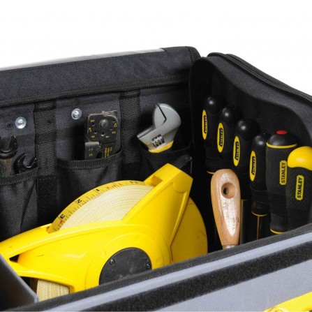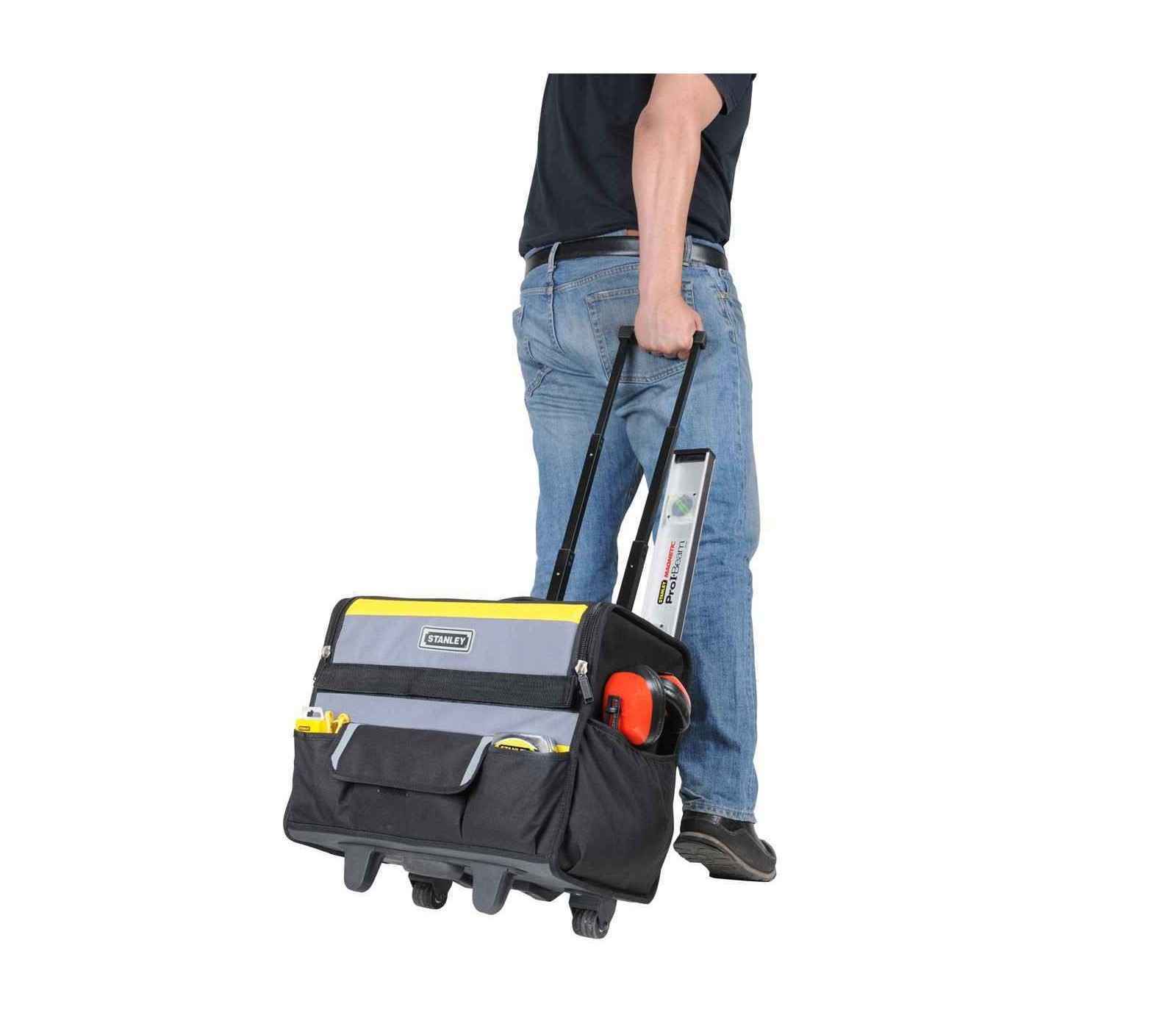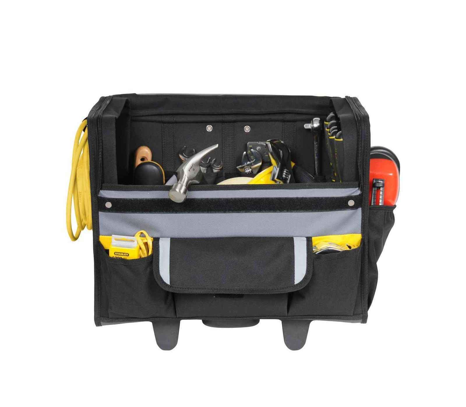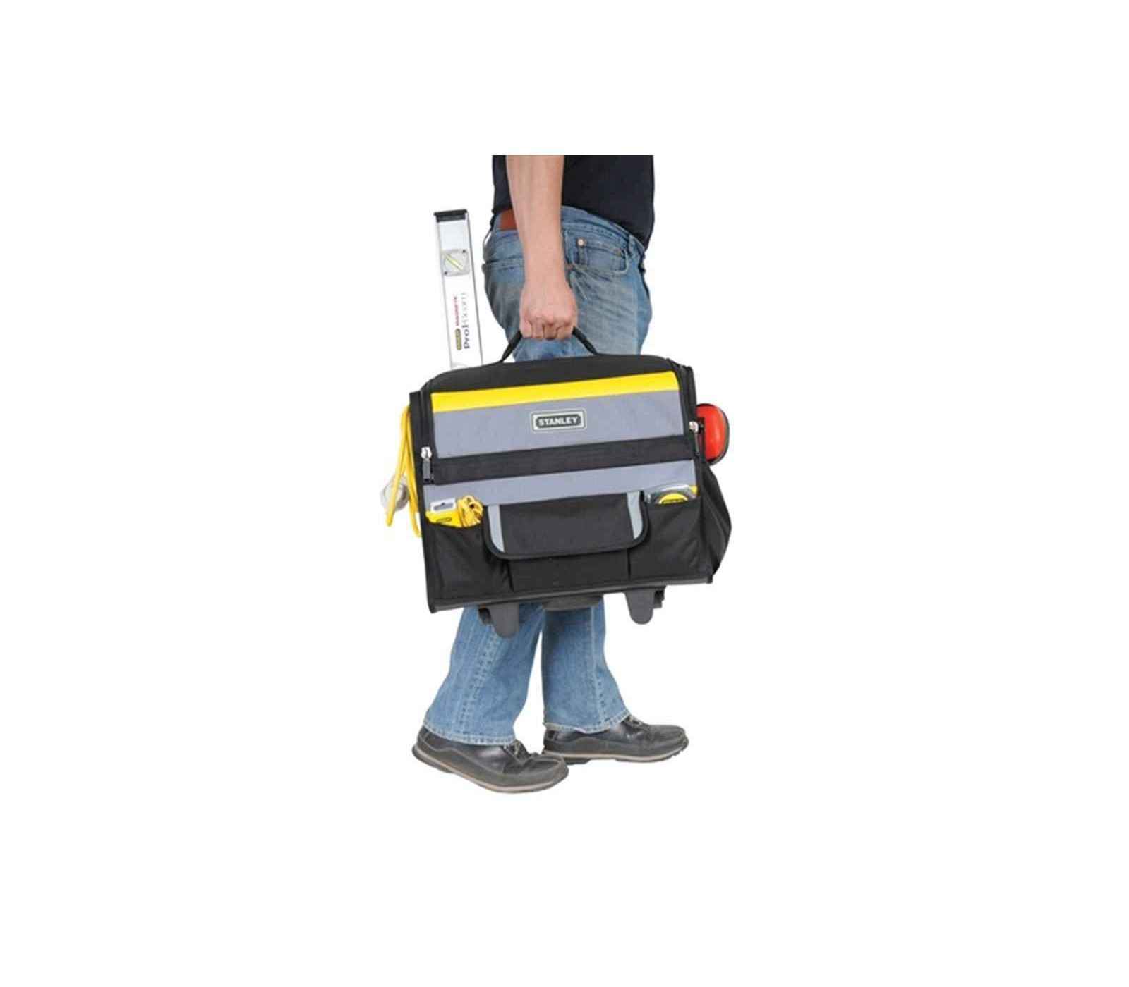 Stanley Nylon įrankių krepšys su ratukais (1-97-515) yra praktiškas ir patvarus įrankių laikymo sprendimas, kuris suteikia patogumą transportuojant įrankius. Jo dizainas leidžia lengvai pasiekti turinį ir užtikrina, kad jūsų įrankiai bus saugūs ir tvarkingi.