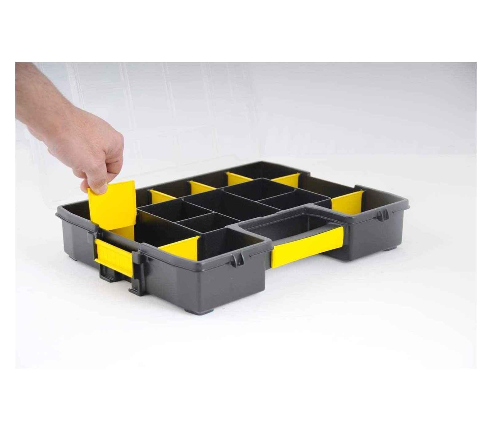 Prekės ženklas- Stanley. Artikulas- 1-93-950 . Ilgis- 46 cm. Plotis- 28 cm. Aukštis- 23 cm. Medžiaga- Audinys, Natūrali oda, Plastikas. Spalva- Juoda, Geltona. Garantija- 24 mėn. Papildoma informacija- Patvarumas: iki 25 kg.