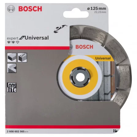 „Expert Universal“ deimantinis pjovimo diskas ilgai tarnauja dirbant su bendromis statybinėmis medžiagomis. Lazeriu suvirinti 12 mm aukščio deimantinio pjovimo segmentai užtikrina stabilumą pjovimo metu, o optimizuota deimantų matrica leidžia užtikrinti išskirtinai ilgą tarnavimo laiką. Tinka betonui ir mūrui pjauti, suderinamas su kampiniais šlifuokliais.