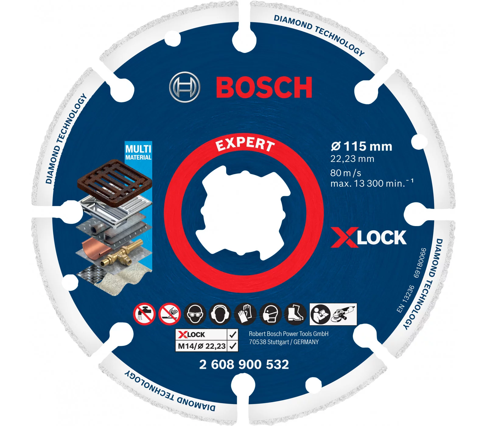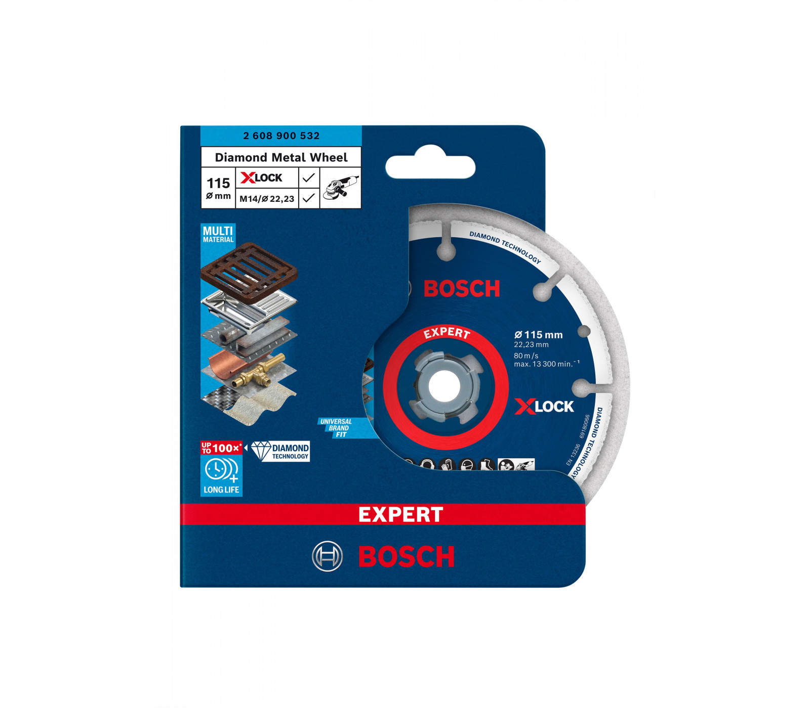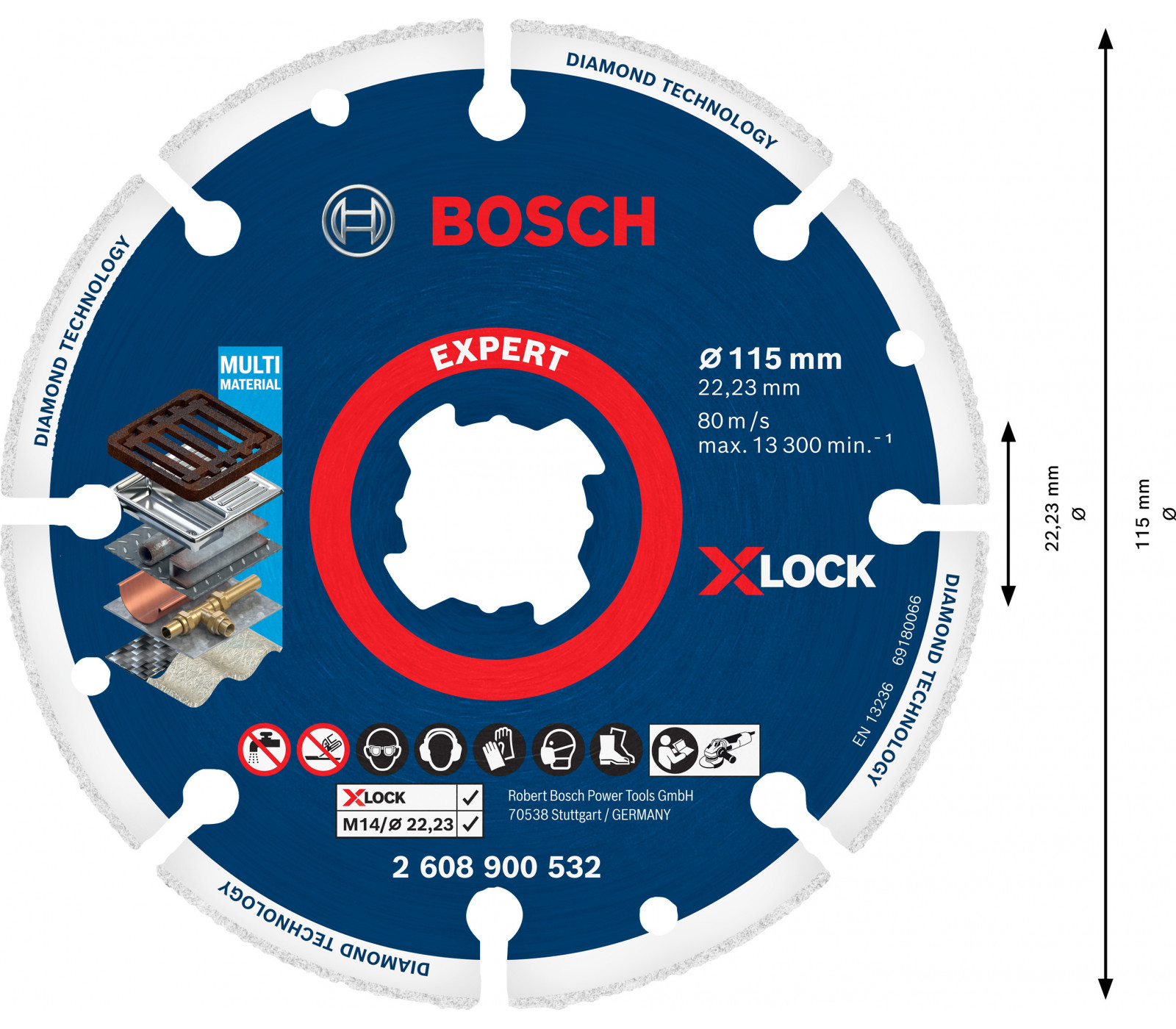 Deimantinis pjovimo diskas Bosch X-Lock yra aukštos kokybės produktas, skirtas efektyviam pjovimui tiek metalams, tiek keramikai. Jo 115 mm skersmuo ir 22,23 mm skersmens centrinis anga užtikrina, kad diskas tiktų daugumai standartinių įrankių.