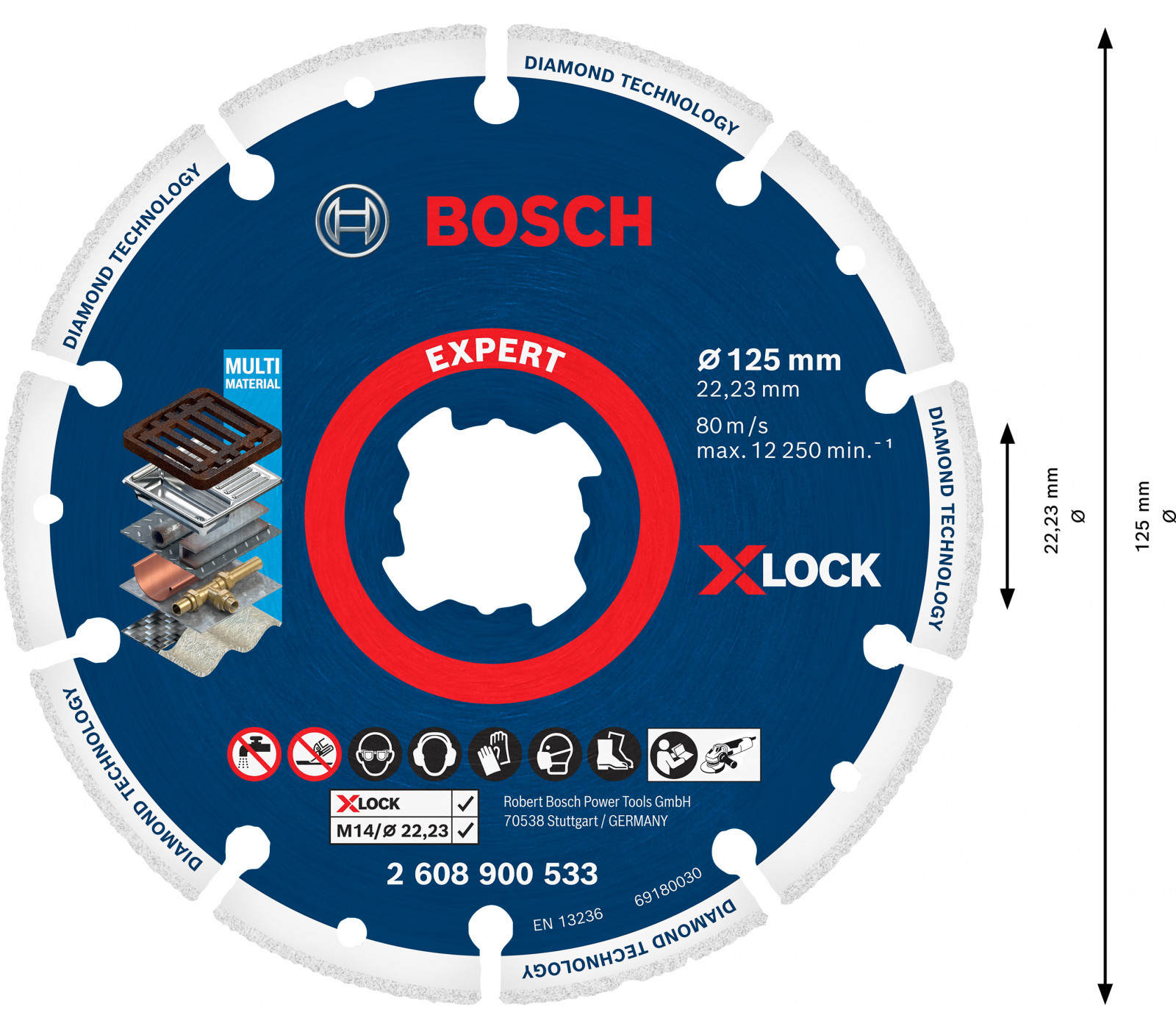 Deimantinis pjovimo diskas ketui ir metalui Bosch,X-Lock, 125 x 22,23 mm, 1 vnt.