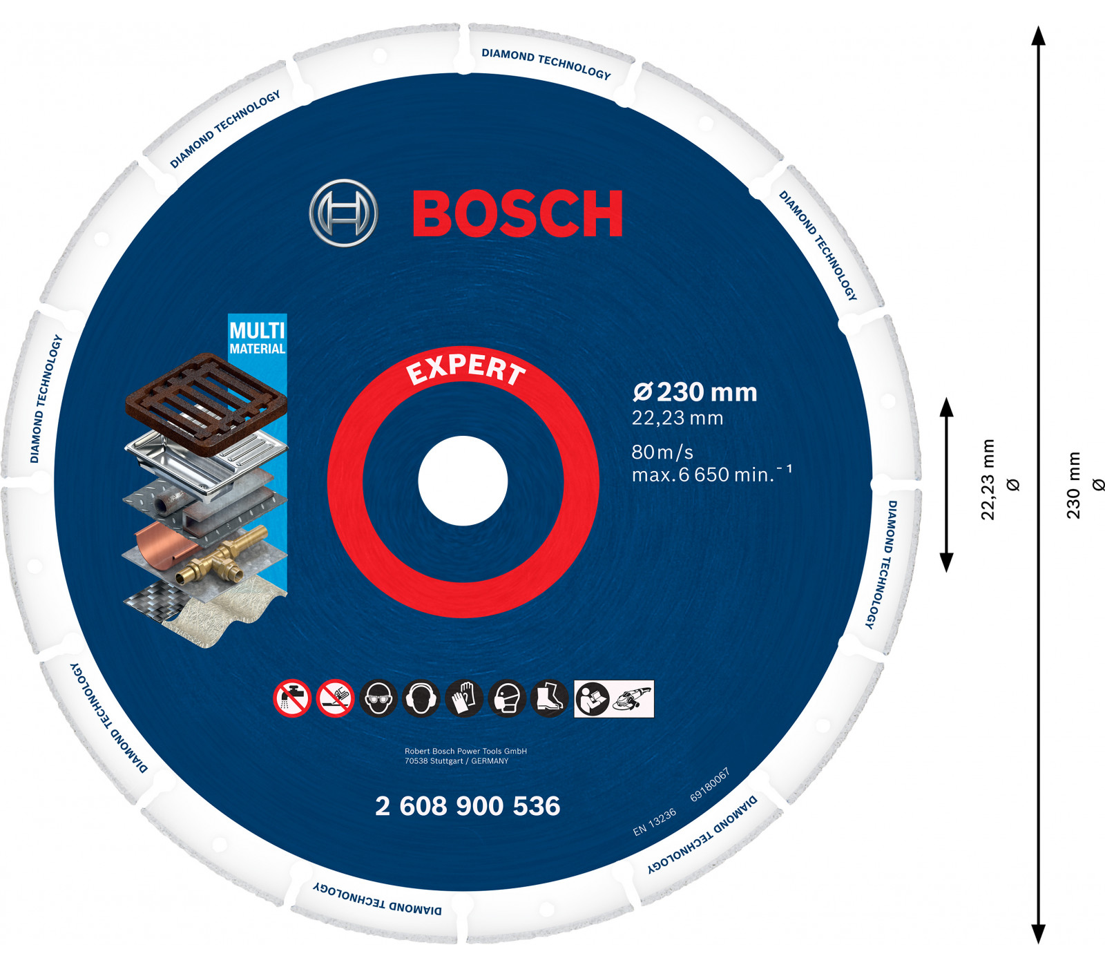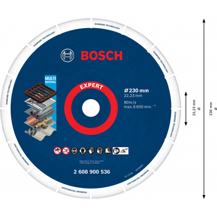 Deimantinis pjovimo diskas ketui ir plienui Bosch, 230 x 22,23 mm, 1 vnt.