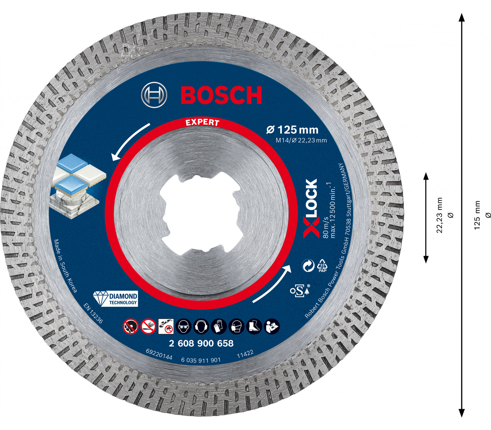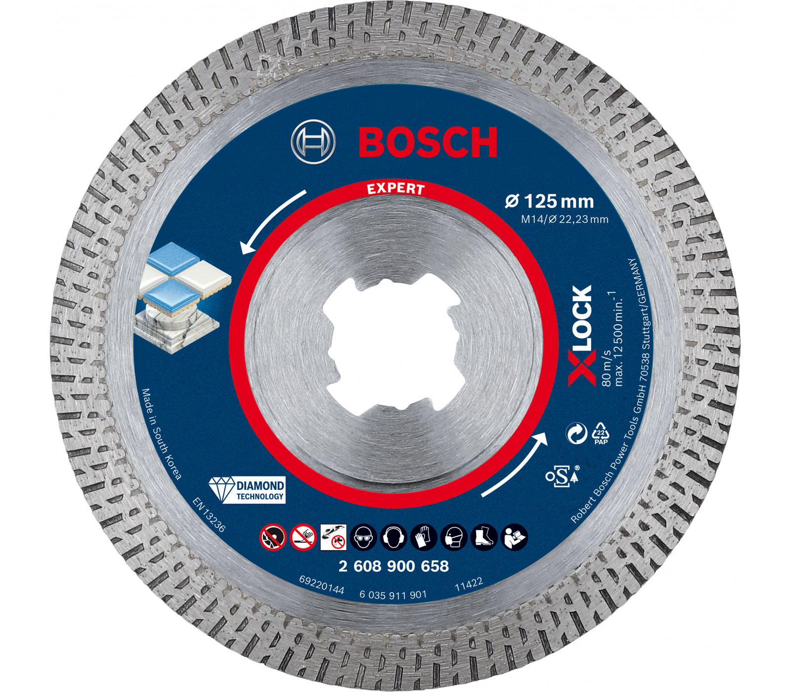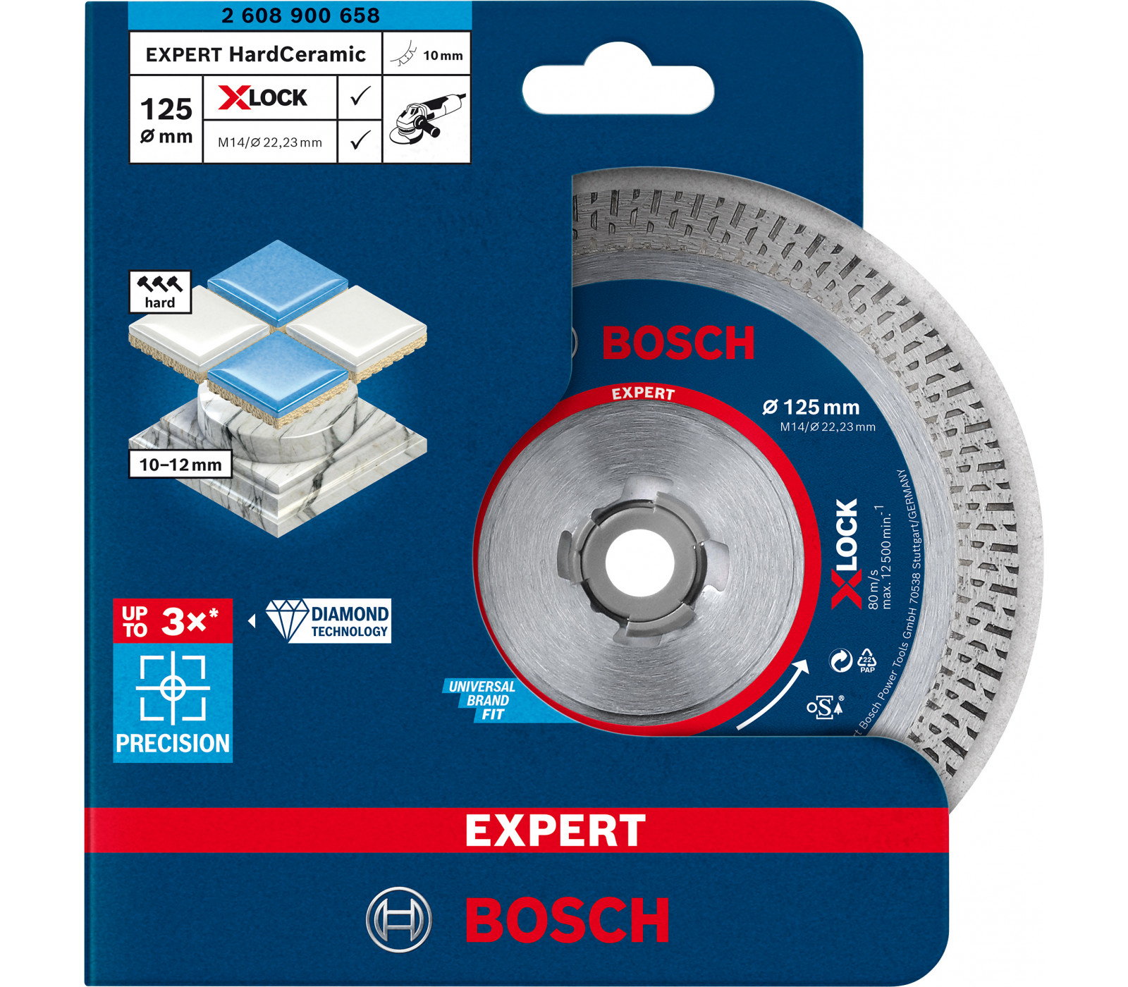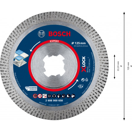 Deimantinis pjovimo diskas kietai keramikai Bosch X-Lock, 125 x 22,23 x 1,6 mm, 1 vnt.