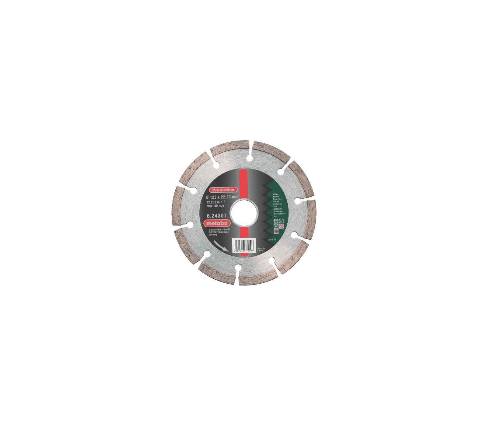 Deimantinis pjovimo diskas Metabo (624307000) yra 125 mm skersmens ir puikiai tinka įvairių medžiagų, tokių kaip betonas ar akmuo, pjovimui. Šis diskas išsiskiria savo ilgaamžiškumu ir efektyvumu, todėl puikiai vertinamas vartotojų.