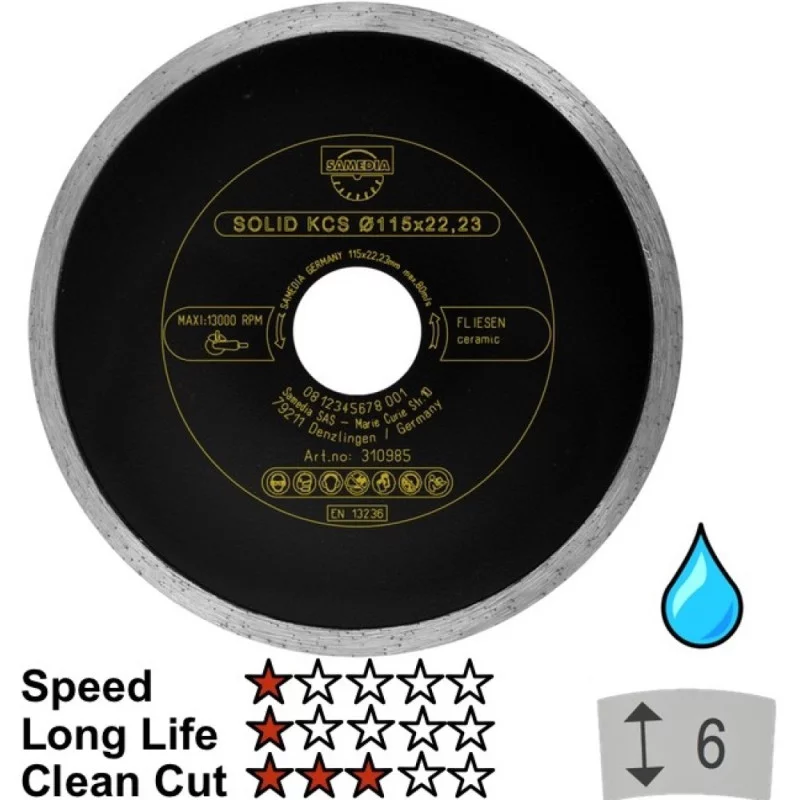 Prekės ženklas- Bosch. Artikulas- 2608602201. Skersmuo- 115 mm. Vidinės skylės skersmuo- 22.23 mm. Storis- 1.6 mm. Svoris- 0.140 kg. Deimantinio disko tipas- Ištisinis. Apdirbama medžiaga- Plytelės, Keramika, Marmuras. Tinka pjovimui- Sausam. Vienetai pakuotėje- 1. Segmento aukštis- 7 mm. Maksimalus sūkių dažnis per minutę- 13300 rpm. Pjovimo greitis- 80 m/s. Garantija- 24 mėn. Tinka įrankiams- Kampiniams šlifuokliams. Papildoma informacija- Svoris: 0,140 kg. Detalių medžiaga: plytelės, keramika, marmuras. Segmento aukštis: 7 mm. Maksimalus greitis per minutę: 13300 aps./min. Pjovimo greitis: 80 m/s.