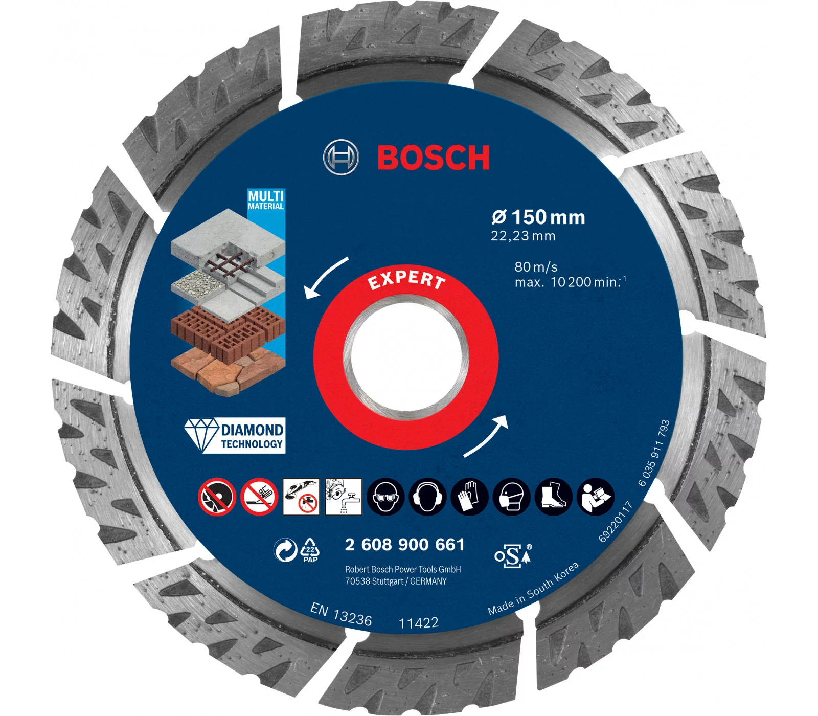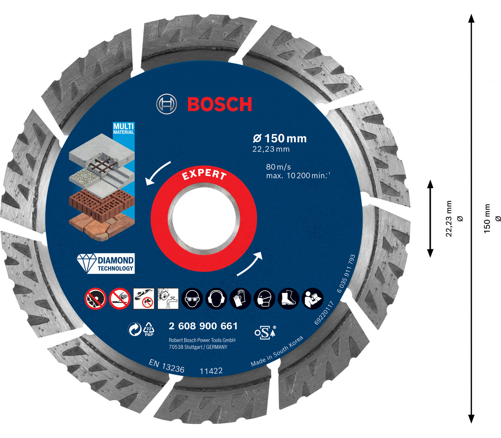Universalus deimantinis pjovimo diskas statyboms Bosch Expert, 150 x 22,23 x 2,4 mm, 1 vnt. (2608900661)