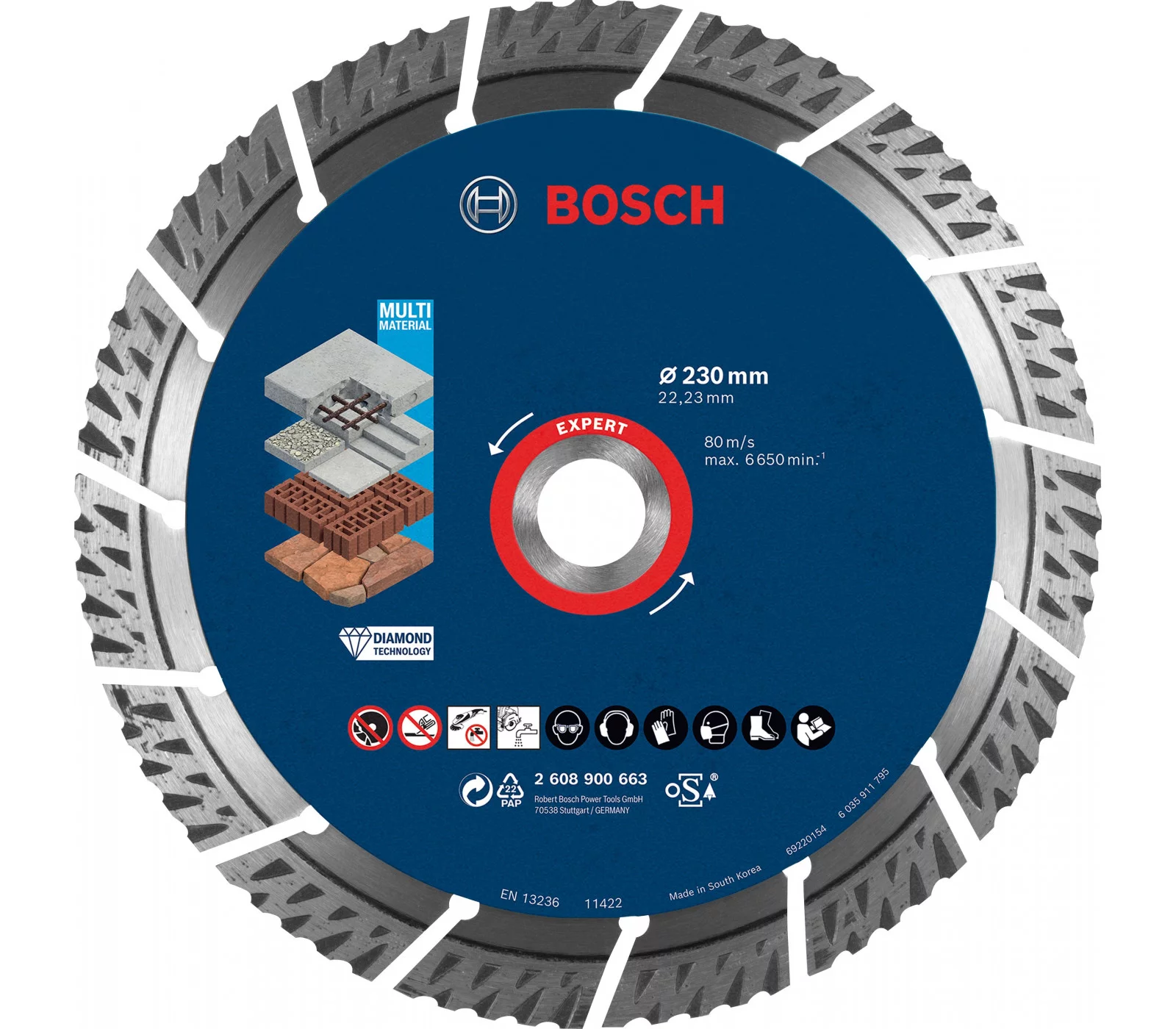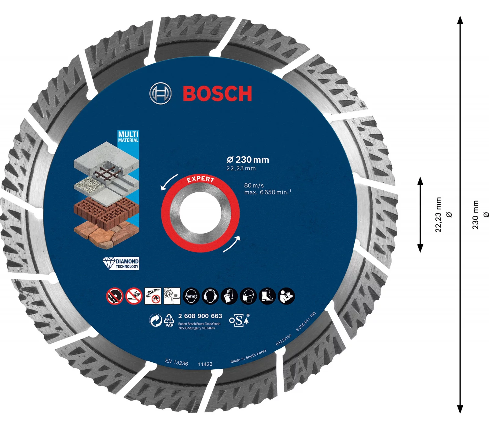 Universalus deimantinis pjovimo diskas statyboms Bosch Expert, 230 x 22,23 x 2,4 mm, 1 vnt.