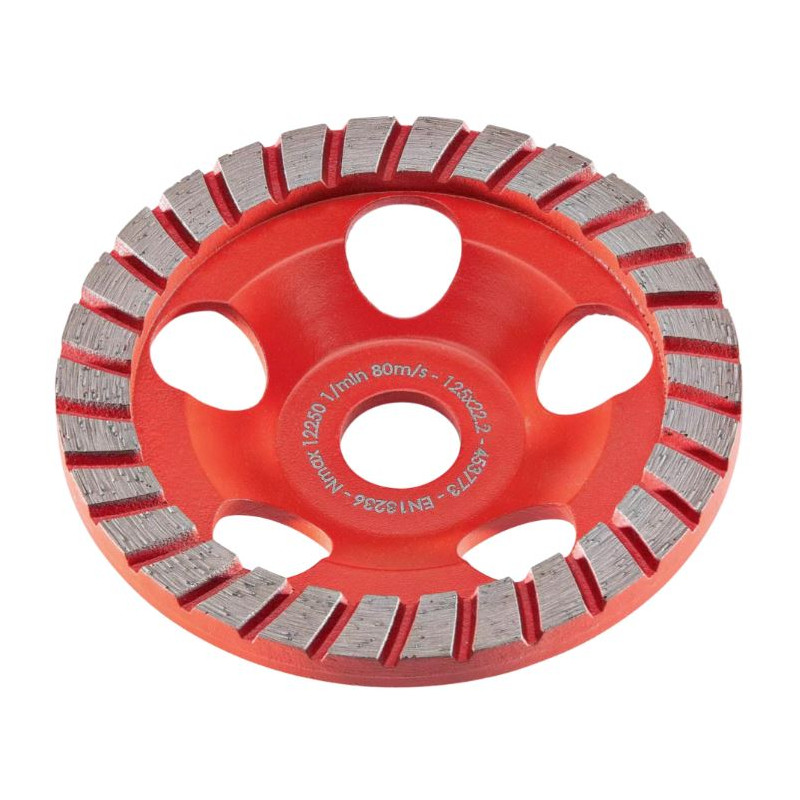 Privalumai: • Idealiai išbalansuota • Efektyvi • Greita • Segmentai tvirtinti indukciniu būdu • Jokios vibracijos • Našiausi SHOXX segmentai • Optimalus dulkių pašalinimas • Pagaminta Vokietijoje Papildoma informacija: • 22,2 mm skersmens skylė tvirtinimui. Įrankis naudojamas: • Betono šlifavimui • Kietesnių medžiagų šlifavimui