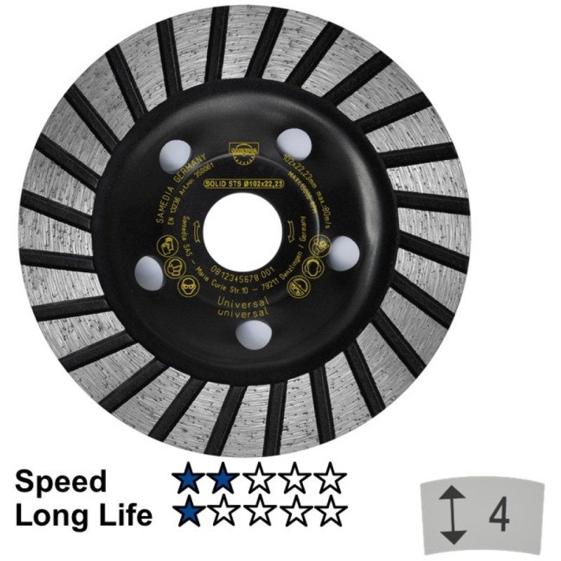 „Deim. šlif. lėkšt.„SAMEDIA" STS180x22 mm“ yra patikimas įrankis, skirtas įvairiems betono šlifavimo darbams. Jo TURBO segmentai užtikrina efektyvų ir greitą šlifavimą, o 22,2 mm skersmens skylė leidžia lengvai jį tvirtinti. Puikiai tinka profesionaliems ir entuziastingiems naudotojams, ieškantiems kokybės ir patvarumo.