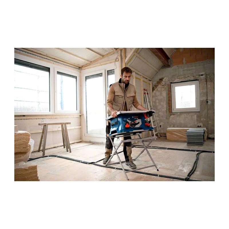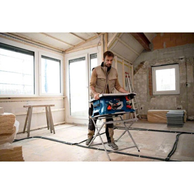 Bosch išilginio pjovimo staklės GTS 18V-216 BITURBO + stovas GTA 560 (be akumuliatoriaus ir įkroviklio)