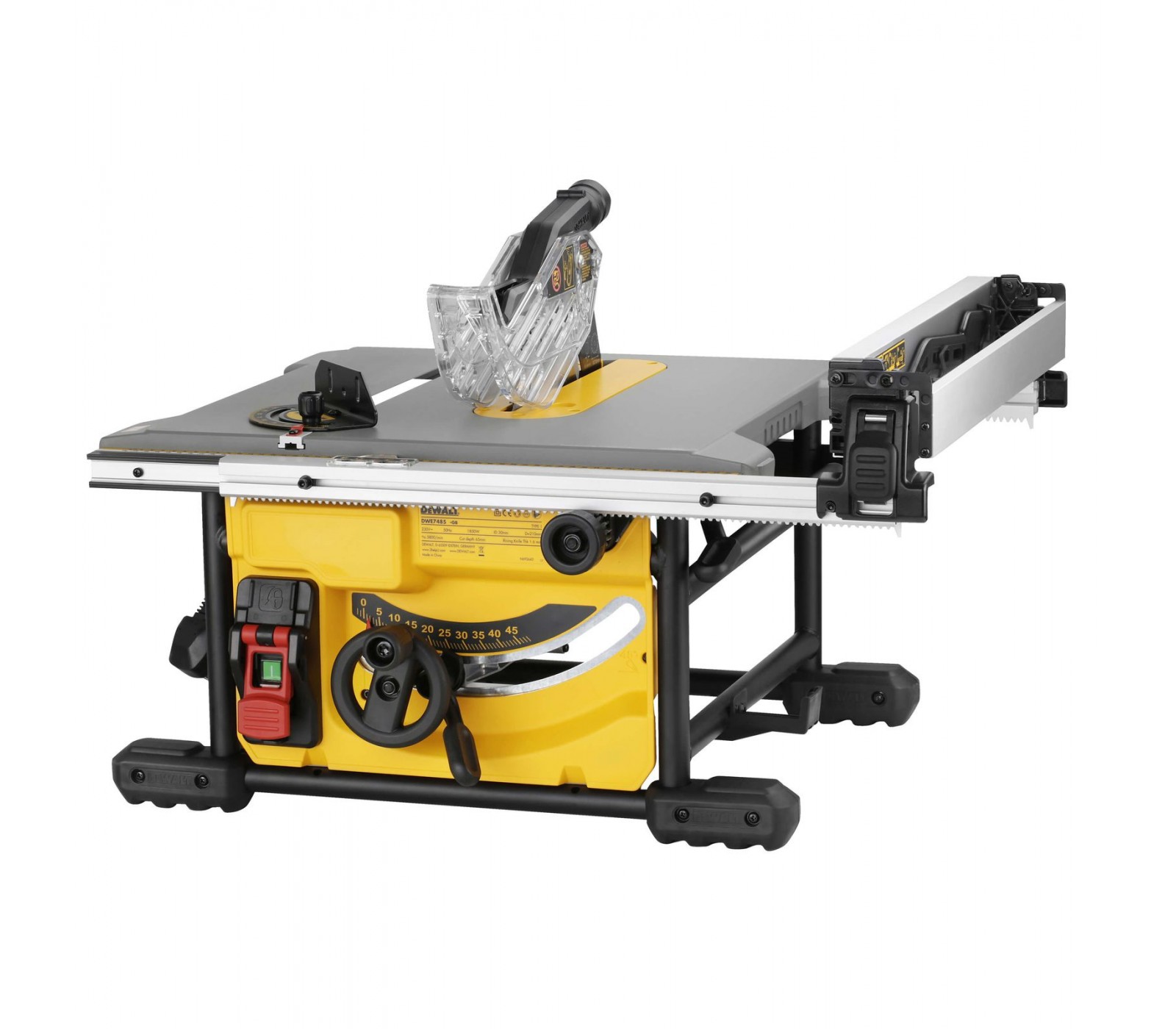 Dewalt DWE7485 išilginio pjovimo staklės yra kompaktiškos ir galingos, su 1850 W varikliu ir 210 mm disku.