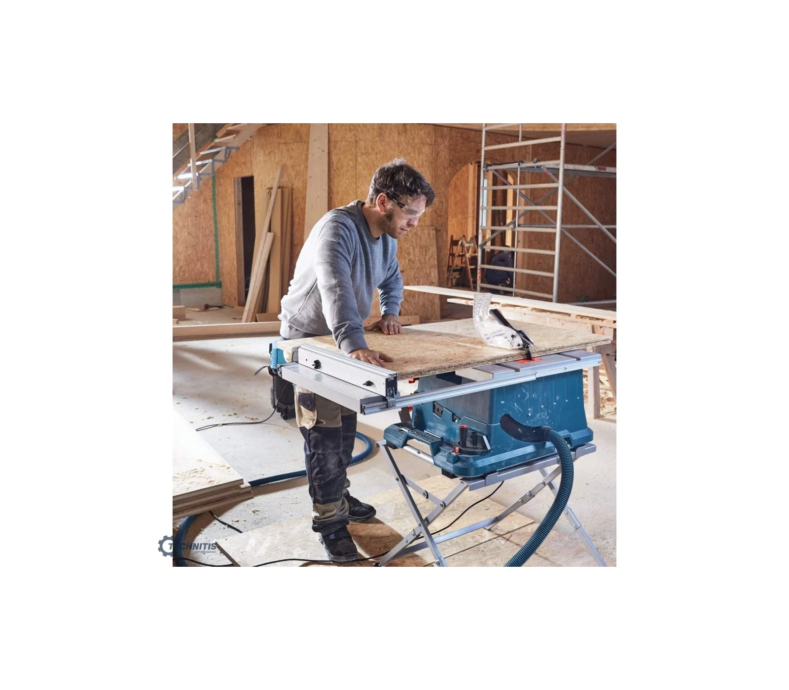 Komplekte pridedamas pjūklo stovas GTA 560, kuris suteikia stabilumą ir lengvą staklių transportavimą. Šios staklės yra idealus sprendimas tiek dirbtuvėse, tiek statybos aikštelėse, kur reikalingas tikslus pjovimas ir patogumas.