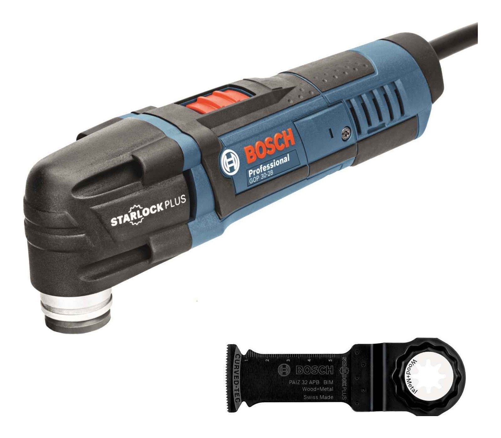 „Bosch GOP 30-28 Professional“ yra daugiafunkcinis įrankis su 300 W varikliu, užtikrinantis puikų galios perdavimą per pažangų „Starlock“ tvirtinimo sistemą ir optimizuotą trijų dalių jungtį. Kompaktiškas ir ergonomiškas dizainas leidžia lengvai suimti ir kontroliuoti įrankį, užtikrinant patogumą naudojimo metu. Įrankyje yra greito keitimo magnetinė tvirtinimo sistema, leidžianti lengvai ir greitai pakeisti priedus. Įrankio be apkrovos svyravimo dažnis yra nuo 8000 iki 20 000 min-1, o svyravimo kampas – 1,4°, kas užtikrina tikslų rezultatą įvairiose srityse. Jo svoris – tik 1,5 kg, todėl jis yra lengvai valdomas ir puikiai tinka plytelių pjovimui, paviršių šlifavimui ir gipso kartono pjovimui. Įrankis suderinamas su „Starlock“ ir „StarlockPlus“ sistemomis.
