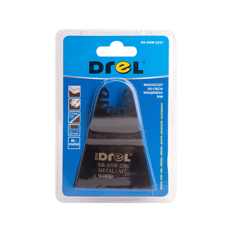 Daugiafunkcinio įrankio geležtė medienai, PVC, gipso plokštėms. Techniniai duomenys: • Tinka: DeWalt, Milwaukee, Stanley, Makita, Bosch (ne STARLOCK jungčiai) įrankiams. • Geležtės plotis 65mm. • Storis 2.5mm. • HCS plienas.