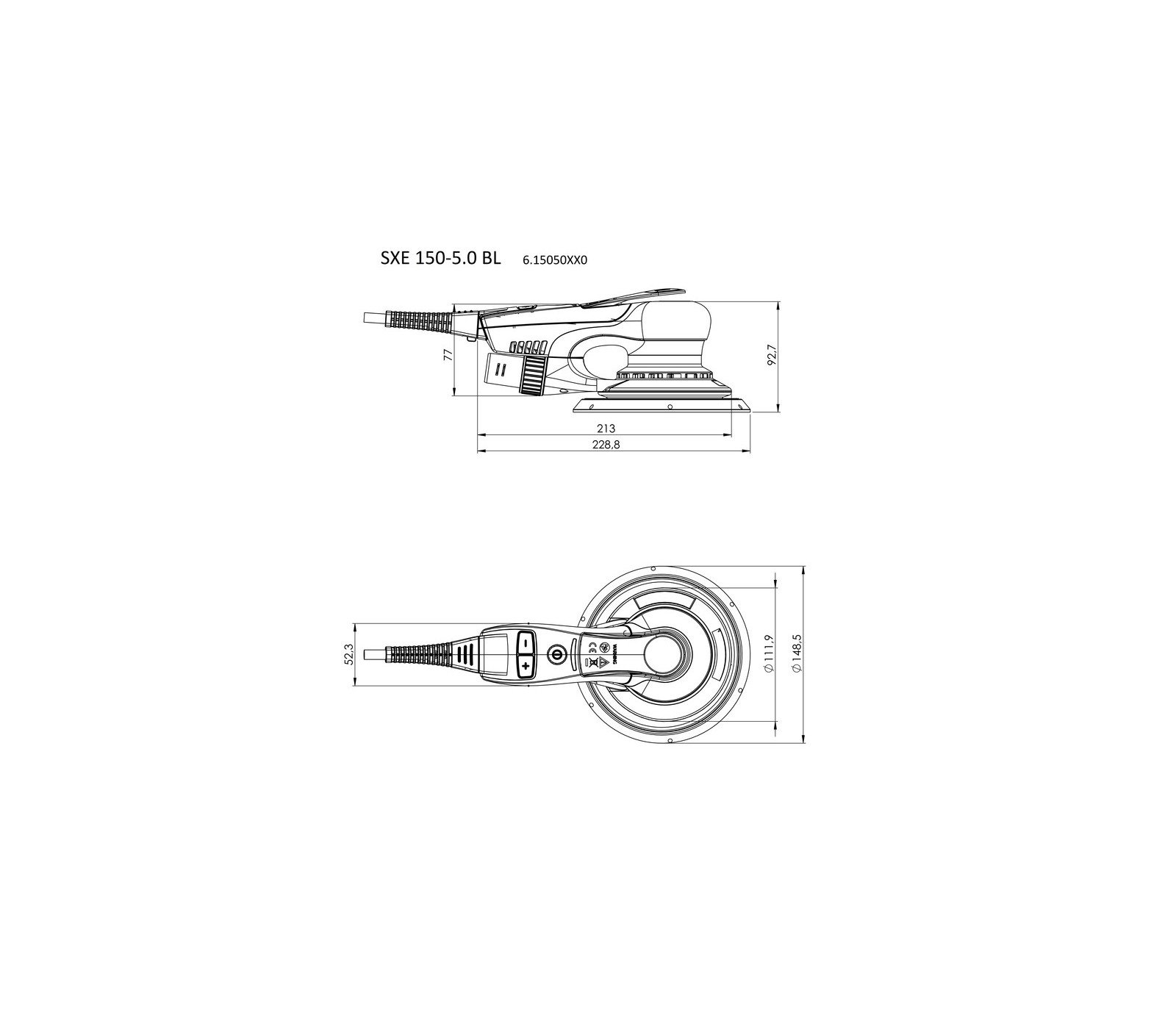 Elektrinis ekscentrinis šlifuoklis Metabo SXE 150-5.0 BL (615050700), 350 W, 150 mm + lagaminas