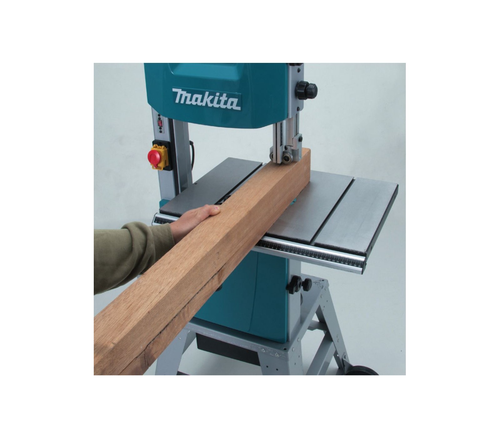 Makita LB1200F juostinis pjūklas su 900 W varikliu ir 305 mm pjovimo aukščiu yra galingas ir tikslus įrankis, skirtas įvairiems medienos pjovimo darbams.