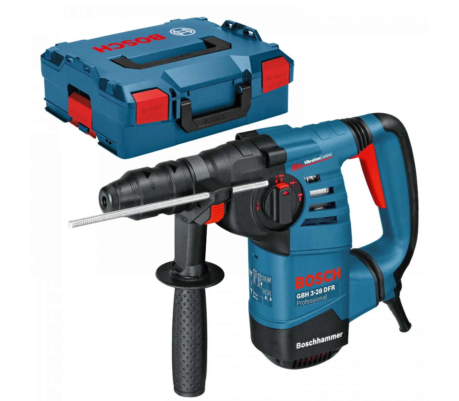 Elektrinis perforatorius Bosch GBH 3-28 DFR, SDS-Plus, 3,1 J, 800 W + L-Boxx lagaminas
