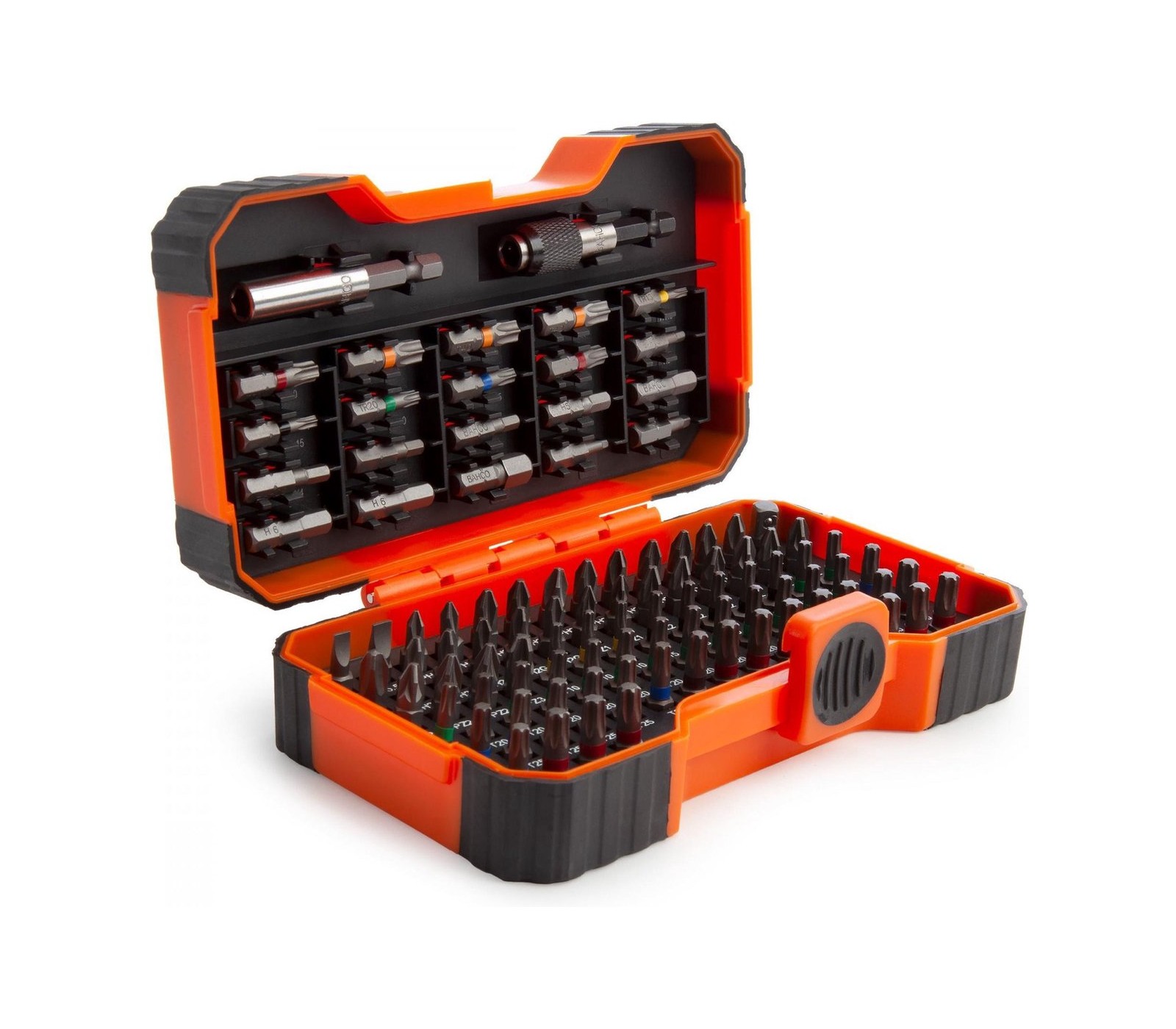 • Rinkinys yra labai įvairus, jame yra 100 skirtingų sukimo antgalių, todėl tinkamas daugeliui užduočių.