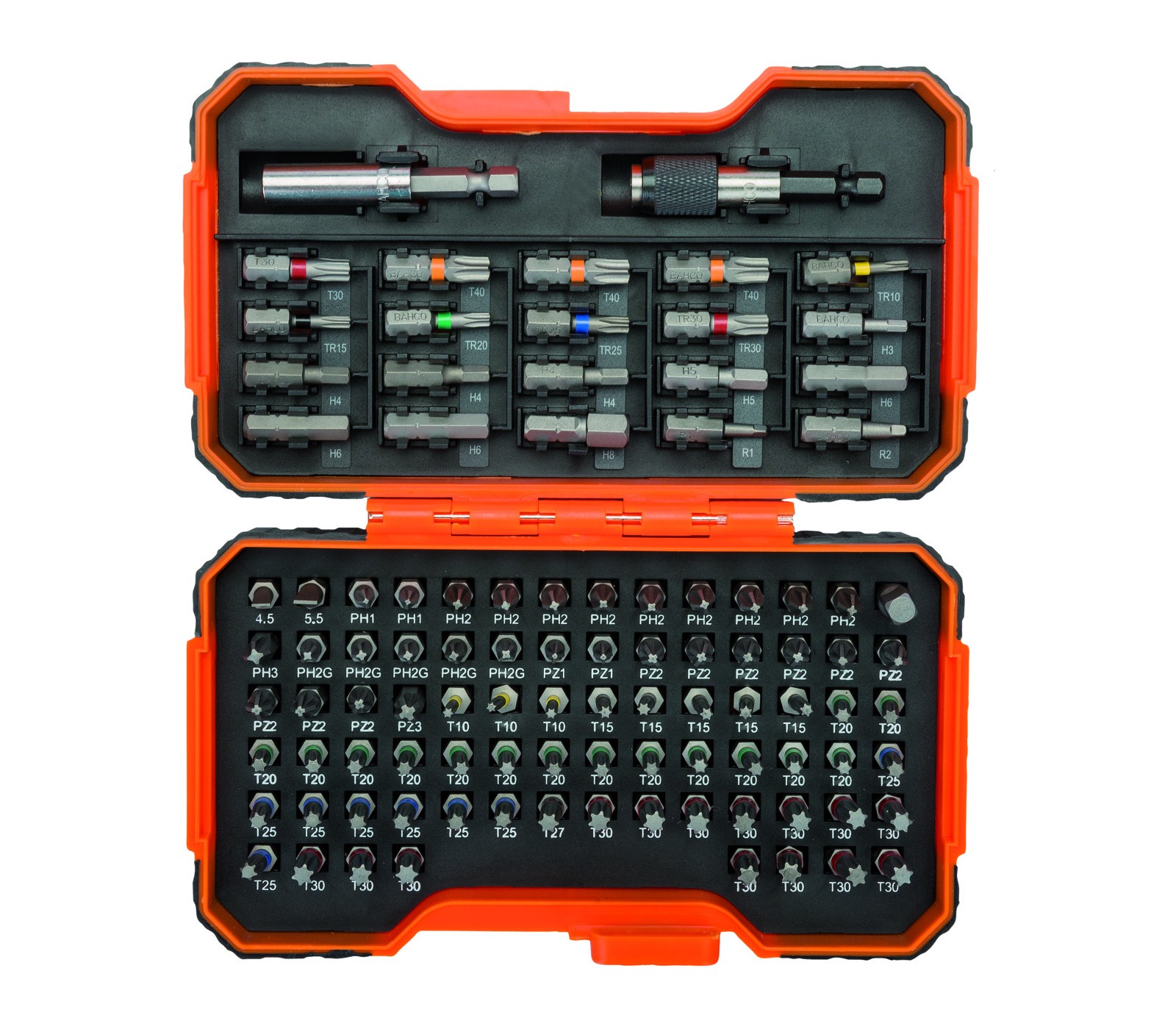 Sudėtyje yra 100 vienetų: 97 antgalių + 1 magnetinis universalus antgalių laikiklis KM653