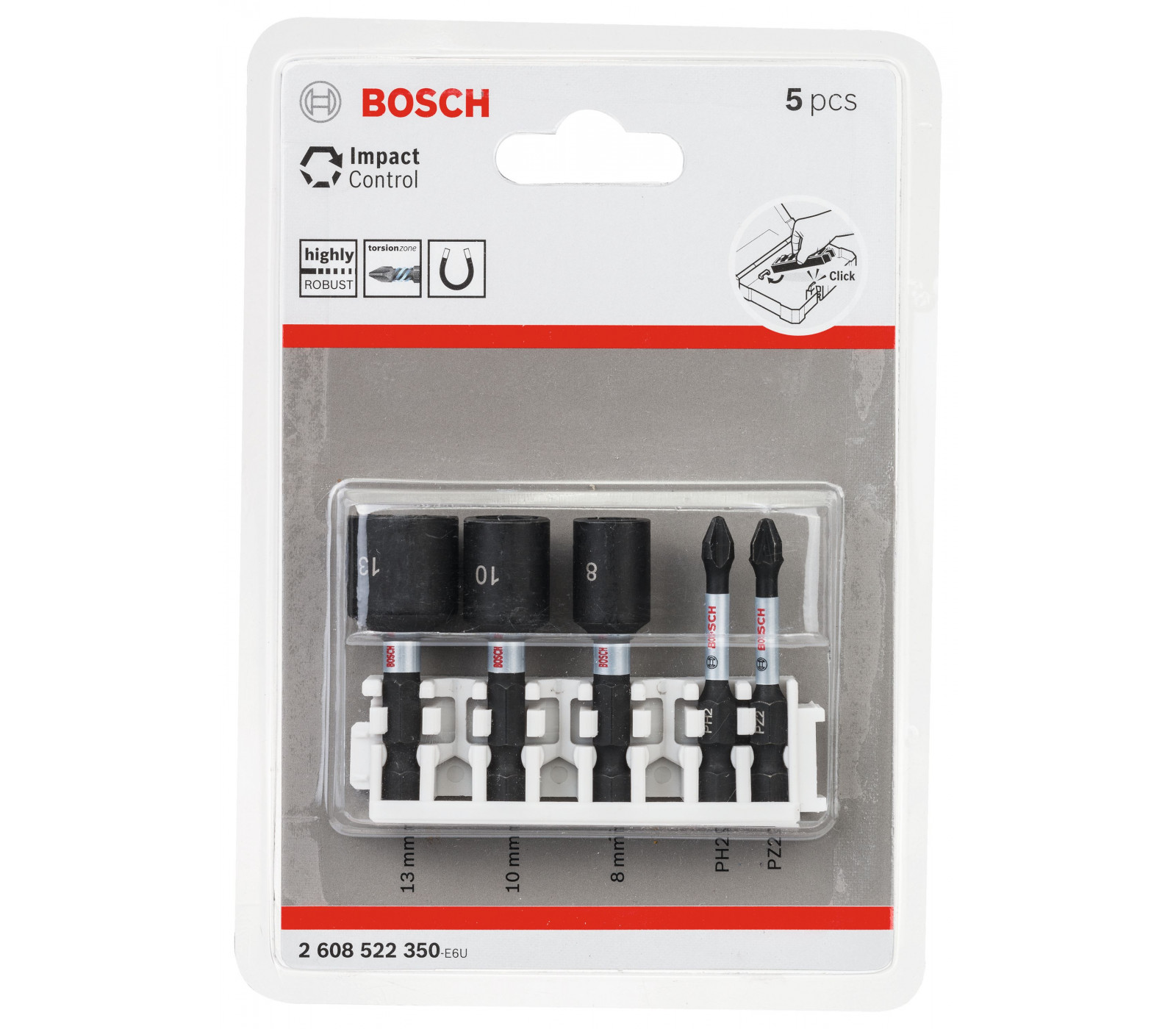 Bosch sukimo antgalių ir galvučių rinkinys Impact Control, 5 vnt, 25 mm